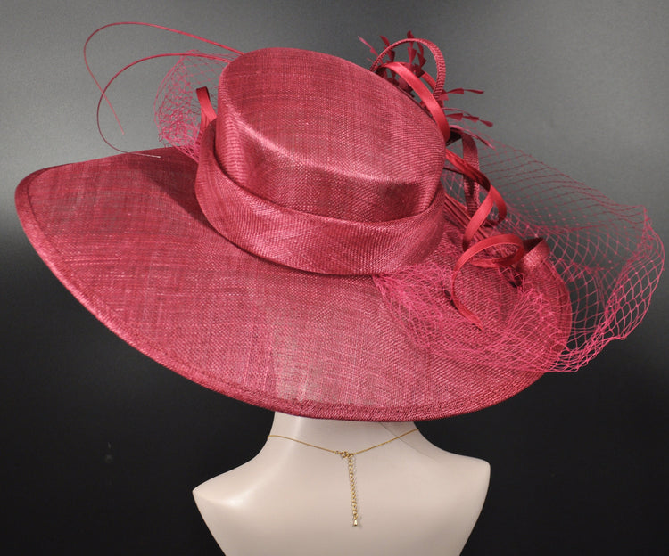 Burgundy Sinamay Wide Brim Hat: Kentucky Derby, Royal Ascot