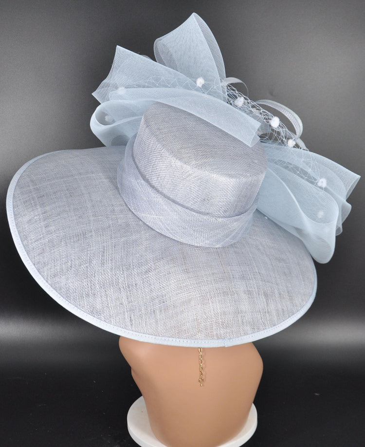 Church Kentucky Derby Hat Carriage Tea Party Wedding Wide Brim Royal Ascot Horse Race Oaks day hat Light Blue/Powder Blue Derby Hat