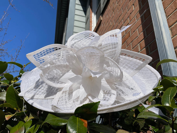 Church, Kentucky Derby Hat ,Carriage, Tea Party, Wedding, Wide Brim Sinamay Hat, Royal Ascot Hat, Horse Race Hat, Oaks day hat White