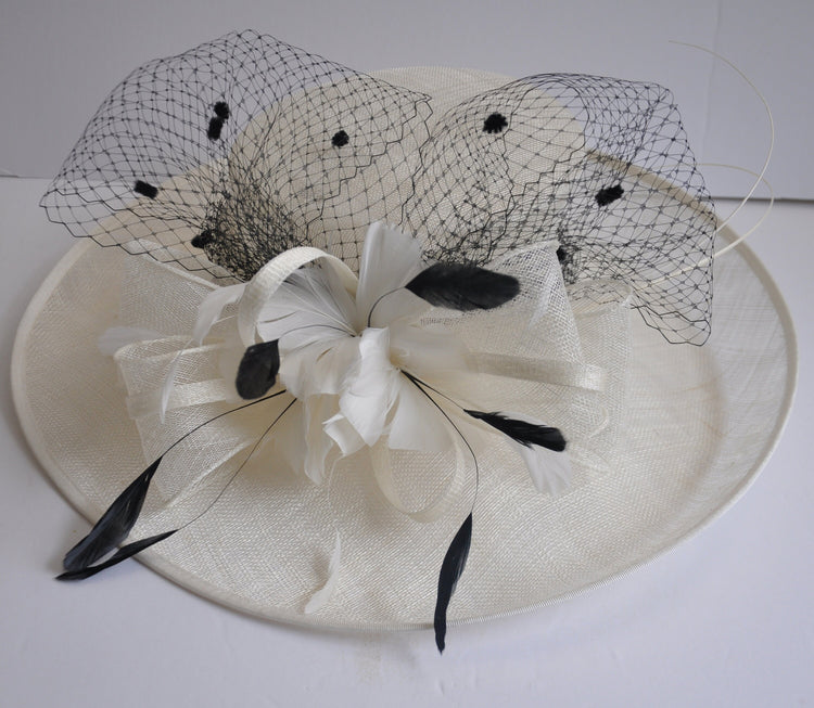 Church Kentucky Derby HatCarriage Tea Party Wedding Wide Brim Royal Ascot Horse Race Oaks day hat Ivory with Black