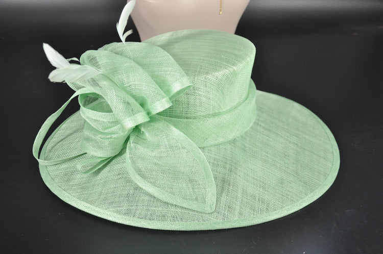 Elegant Mint Green Sinamay Wide-Brim Hat – Kentucky Derby, Wedding, Garden Party, Ascot Hat
