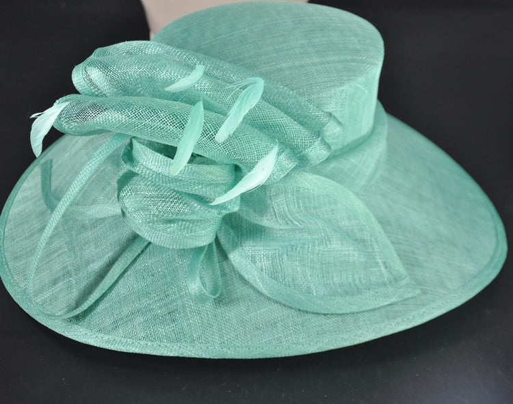 Elegant Turquoise Sinamay Wide-Brim Hat – Kentucky Derby, Wedding, Garden Party, Ascot Hat