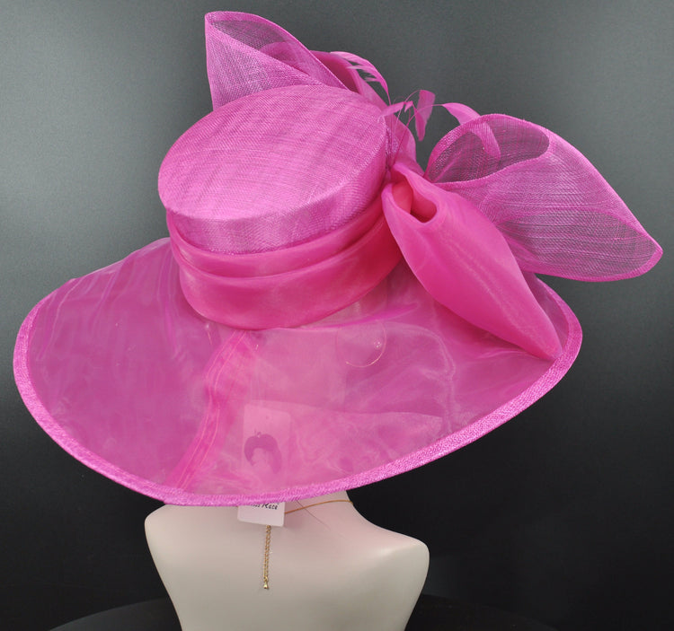 Fuchsia Sinamay Derby Hat: Wide Brim Wedding, Church, or Tea Party