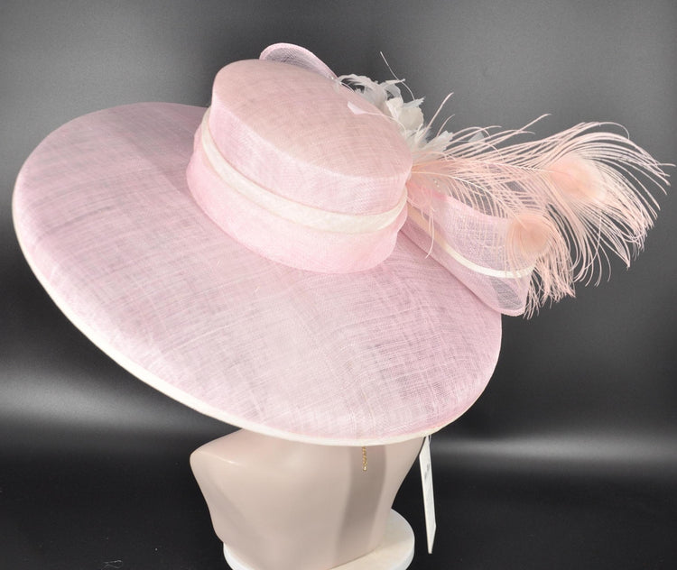 Pink Sinamay Derby Hat: Feathered Royal Ascot Headpiece