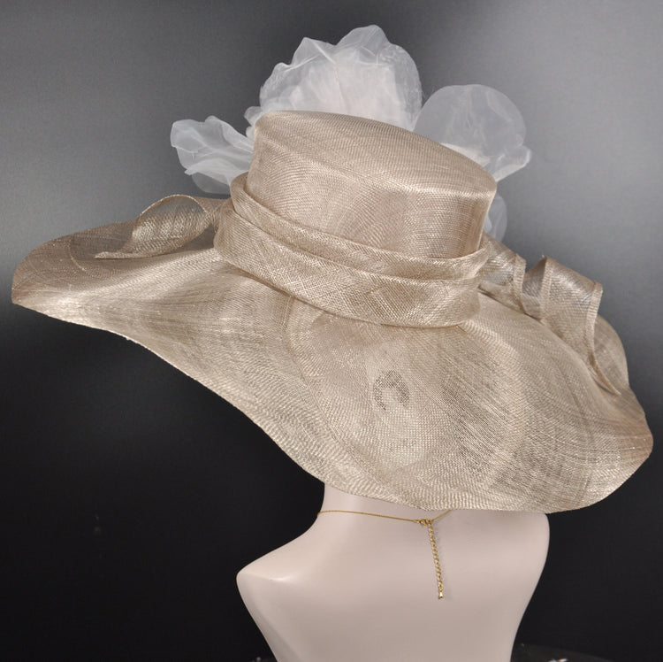 Taupe Jumbo Silk Flower, Kentucky Derby hat, Church hat, Wedding hat, Tea Party hat , Floppy Wide Brim Sinamay Dress Hat