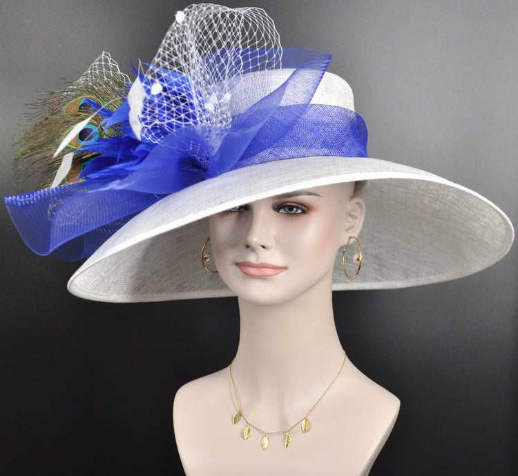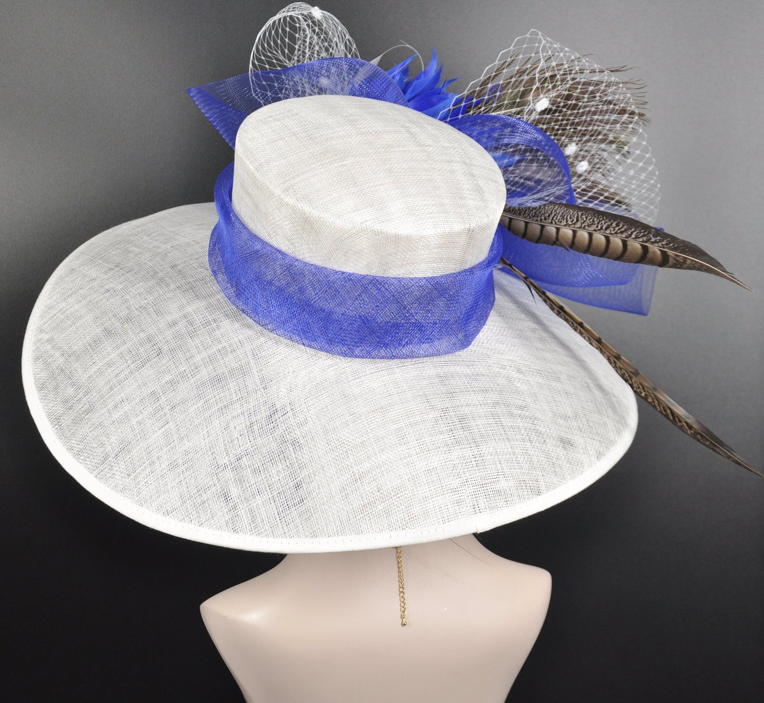 Kentucky Derby Hat, Church hat, Tea Party Hat, Custom hat, Formal Hat, Fashion Hat Royal Blue w White