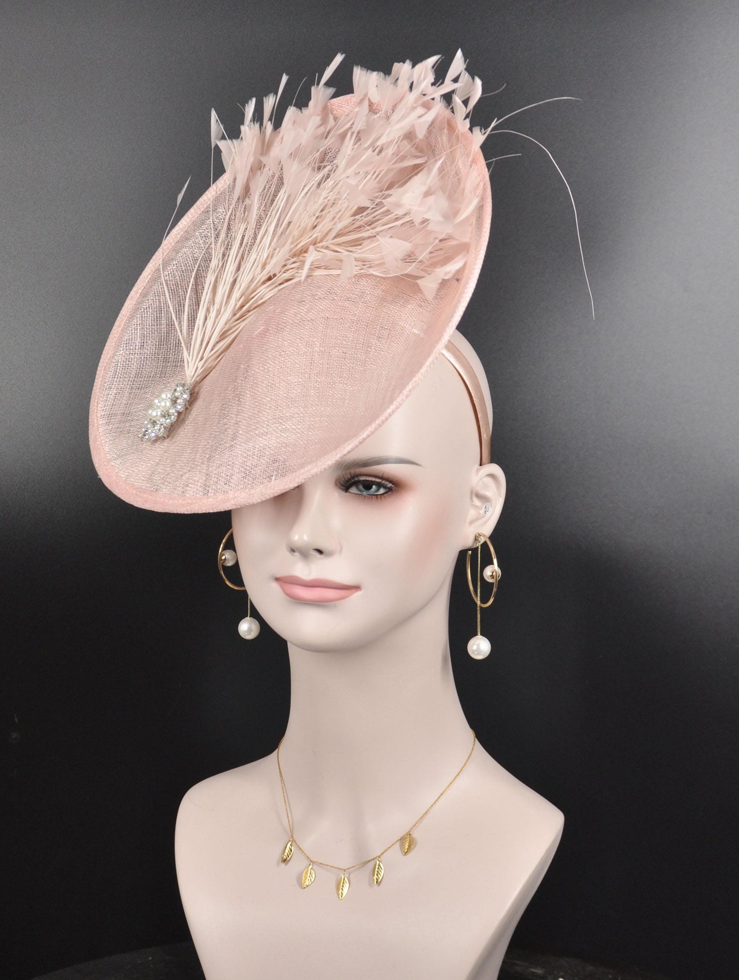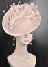 Blush Pink Sinamay Fascinator: Feather Flower Kentucky Derby Hat