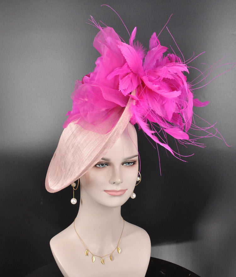 Fuchsia Pink Feather Flower Fascinator Hat: Kentucky Derby Tea Party
