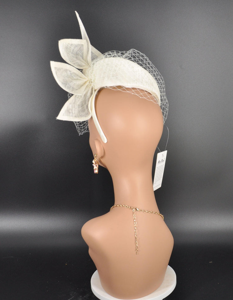 Off White Sinamay Fascinator Hat: Sculpted Bow & Netting - Derby, Wedding, Tea Party