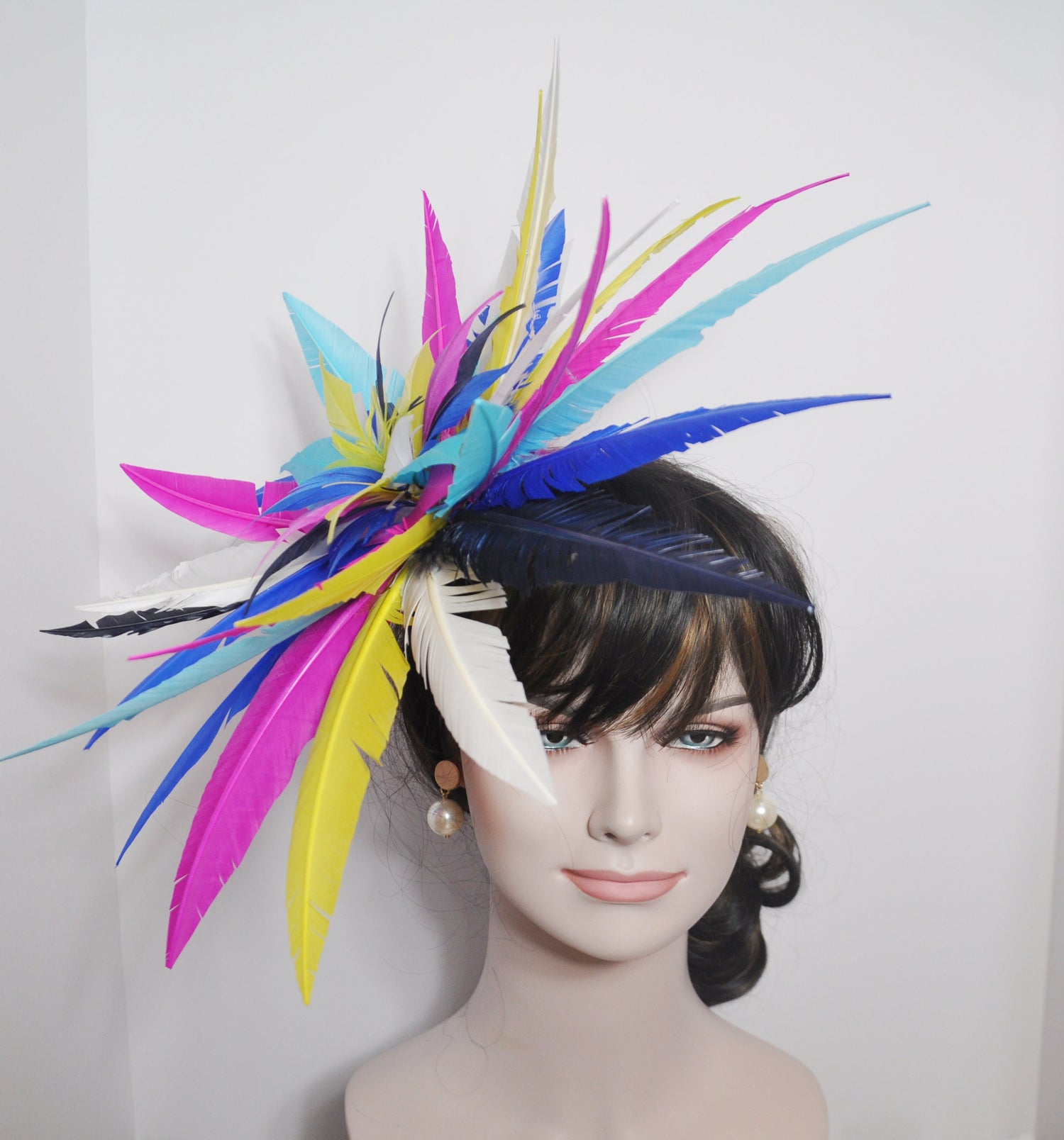 Kentucky Derby Colorful Feathers Flowers Fascinator Hat on a Clip