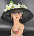 Kentucky Derby Hat: Audrey Hepburn Style Black Sinamay Wide Brim with Orchids