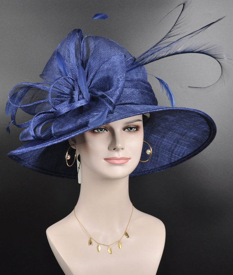 Navy Blue Wide Brim Sinamay Hat, Kentucky Derby Hat, Church hat, Tea Party Hat, Custom hat, Formal Hat, Fashion Hat