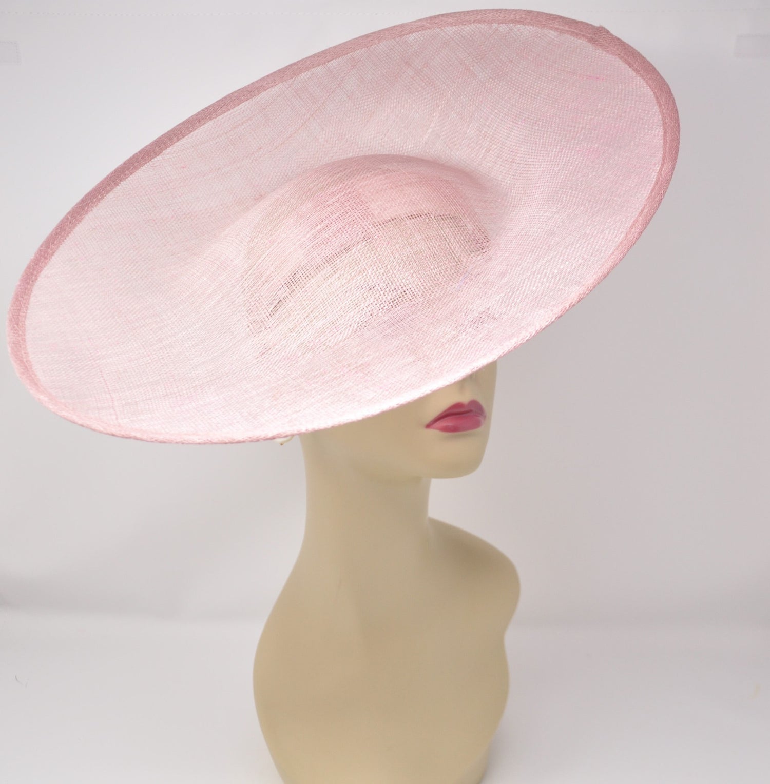 Sinamay saucer hat base hat that that measures approximately 16.14 inches (41 cm) side to side, front to back is also the same size, 16.14 inches, colors are available, balck, white, red, hot pink, lavender , purple, orange, taupe, ivory, royal blue, dusty pink, aqua, yellow and navy blue, now being listed in lots of colors - see them all in my shop!it will help you to support for your millinery creations. Edges trimmed in matching grosgrain ribbon. Just add a comb, clips, head band, or an elastic and its ready to decorate!