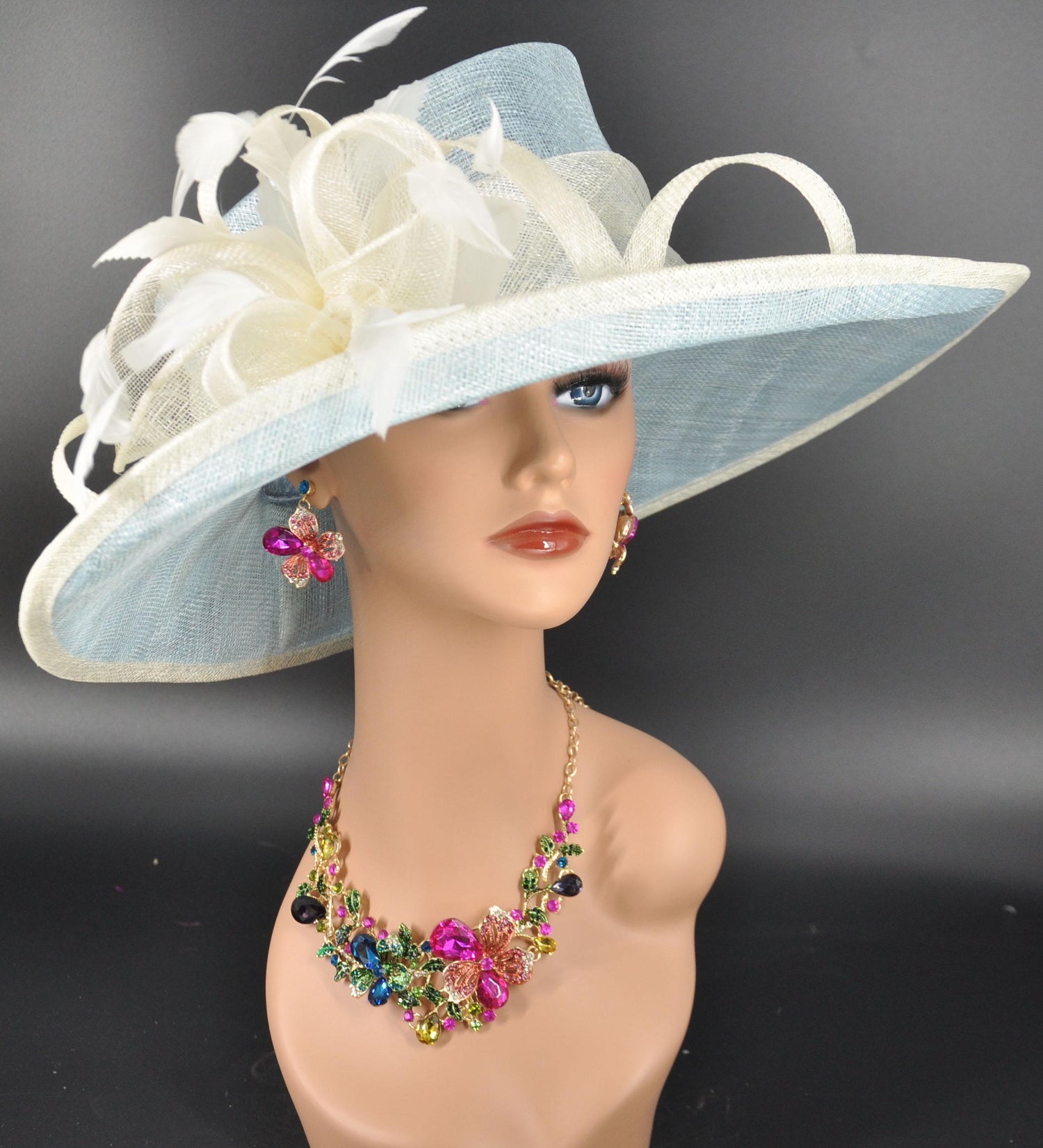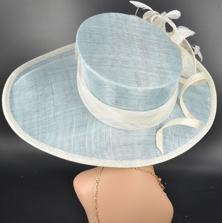 Sinamay Kentucky Derby Hat: Powder Blue Wide Brim Ascot Hat
