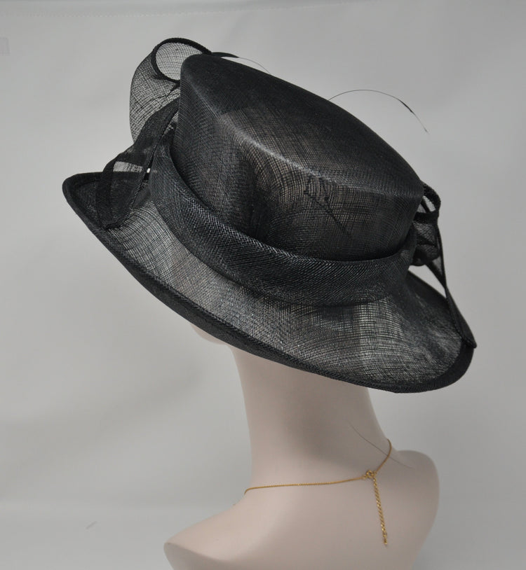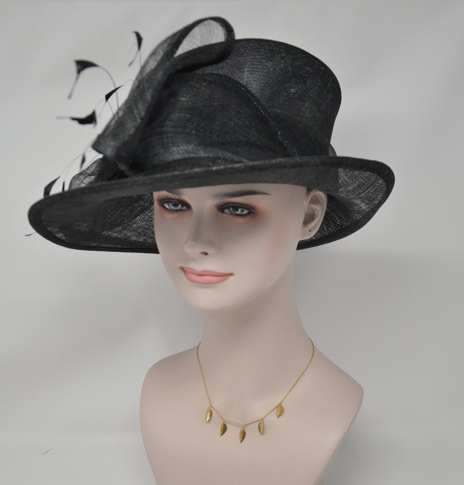 Wide Brim Kentucky Derby Floppy Sinamay Hat With Flowers Millinery Church Hat Black