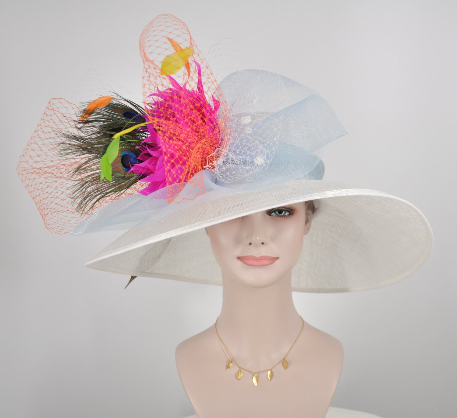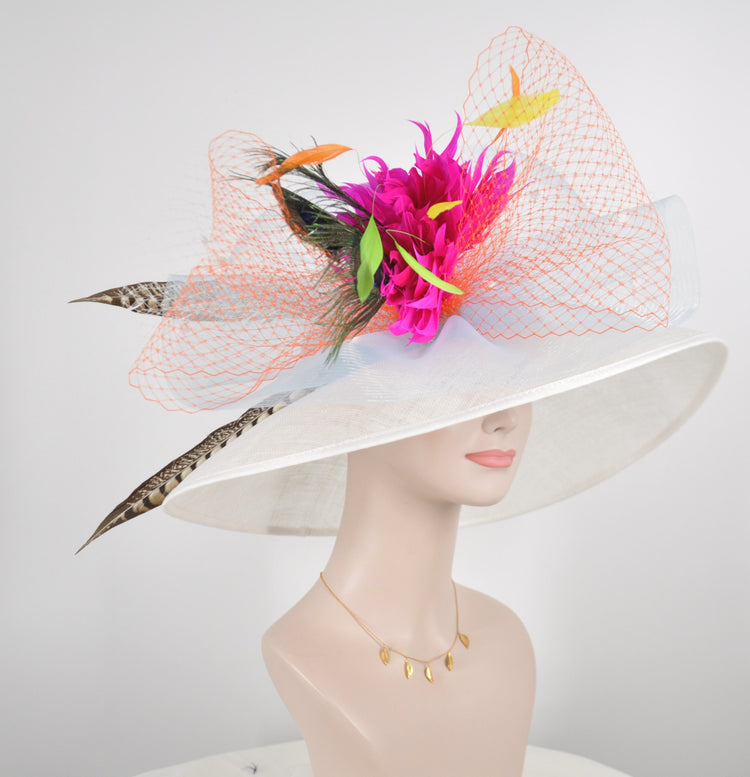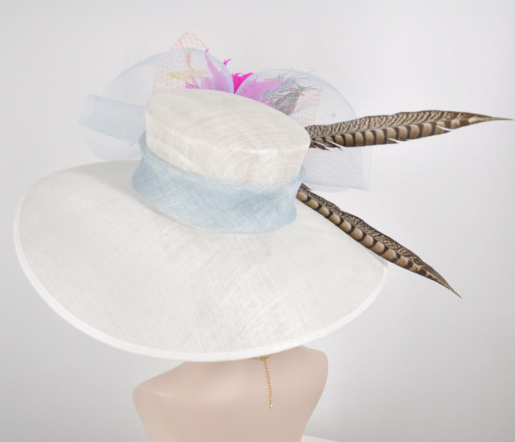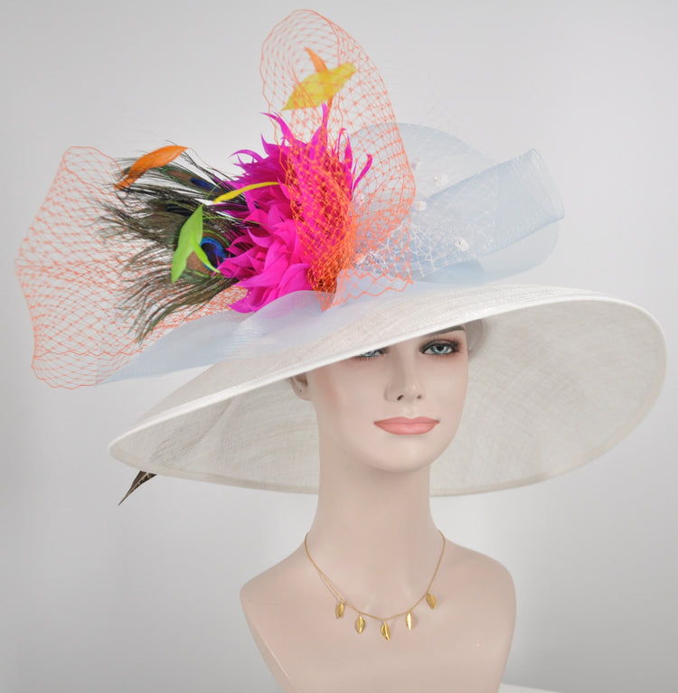 Wide Brim Sinamay Kentucky Derby Hat: Feather Flower Tea Party Wedding
