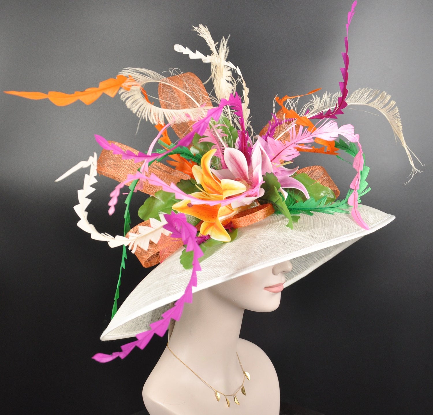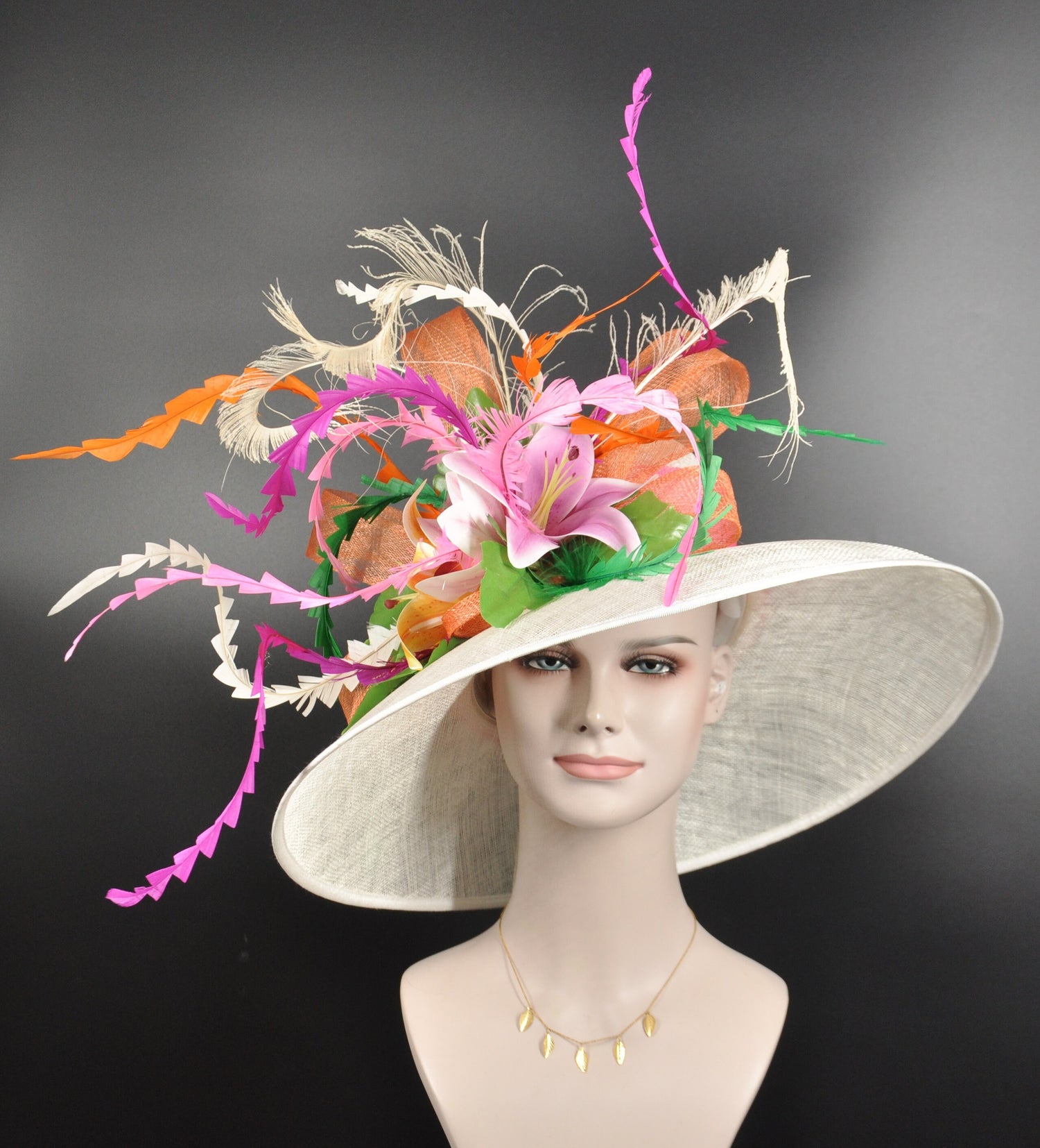 Wide Brim Sinamay Kentucky Derby Hat: Lily Flower Tea Party Wedding