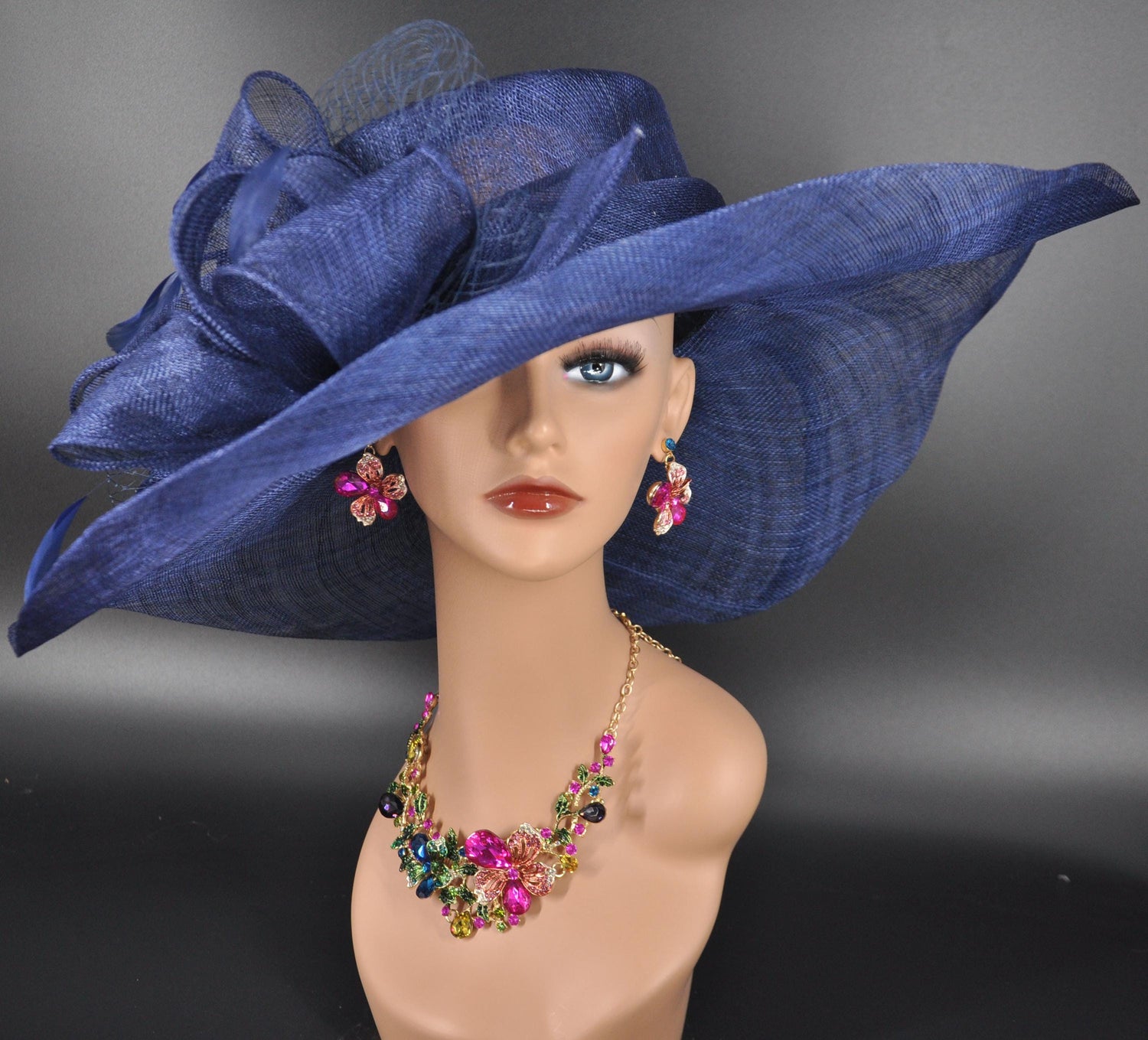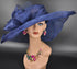 Navy Blue Sinamay Kentucky Derby Hat: Wide Brim Occasion Hat