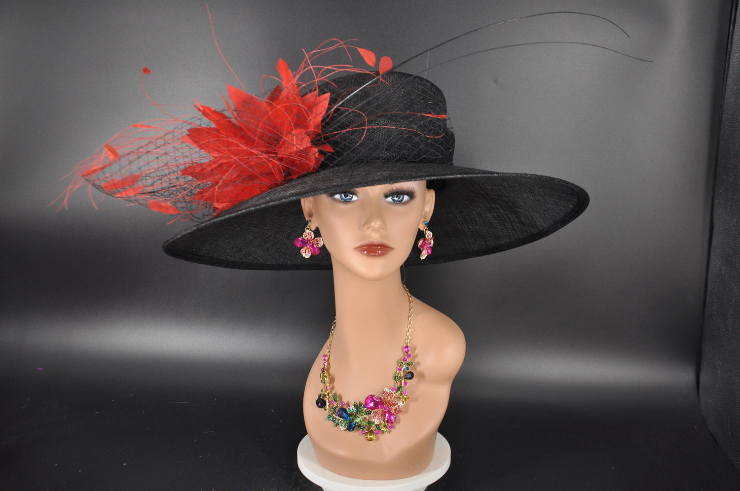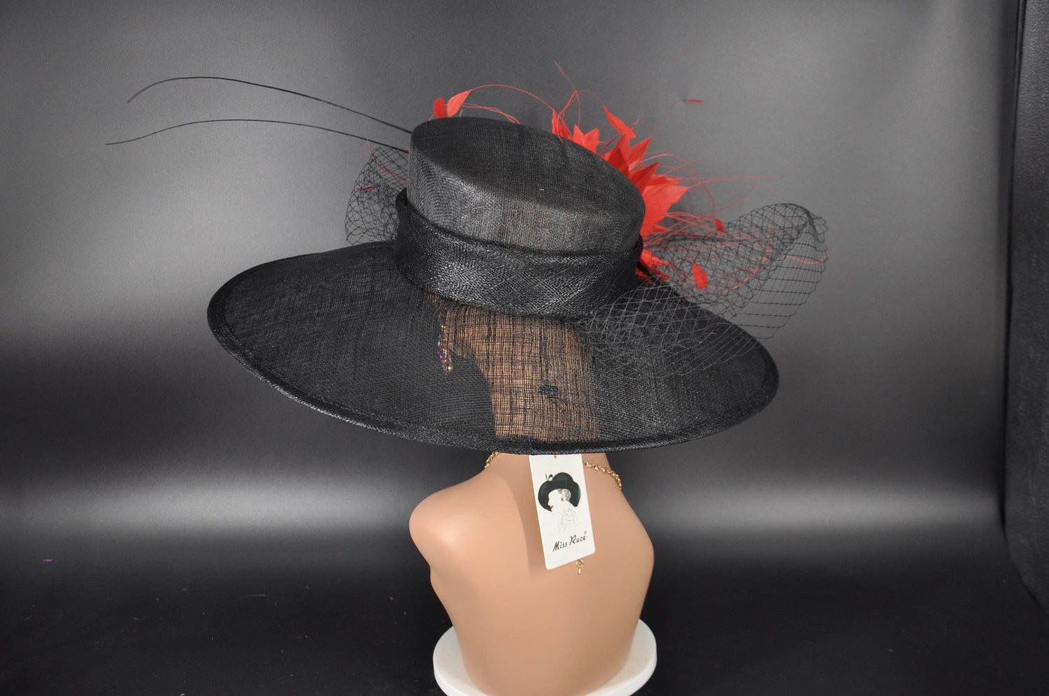 Black Sinamay Wide Brim Hat: Royal Ascot, Kentucky Derby