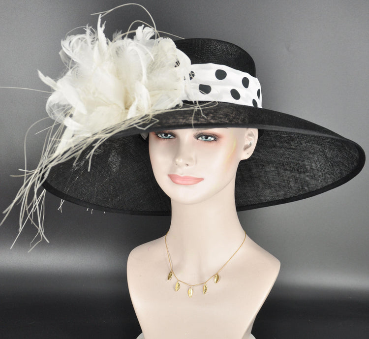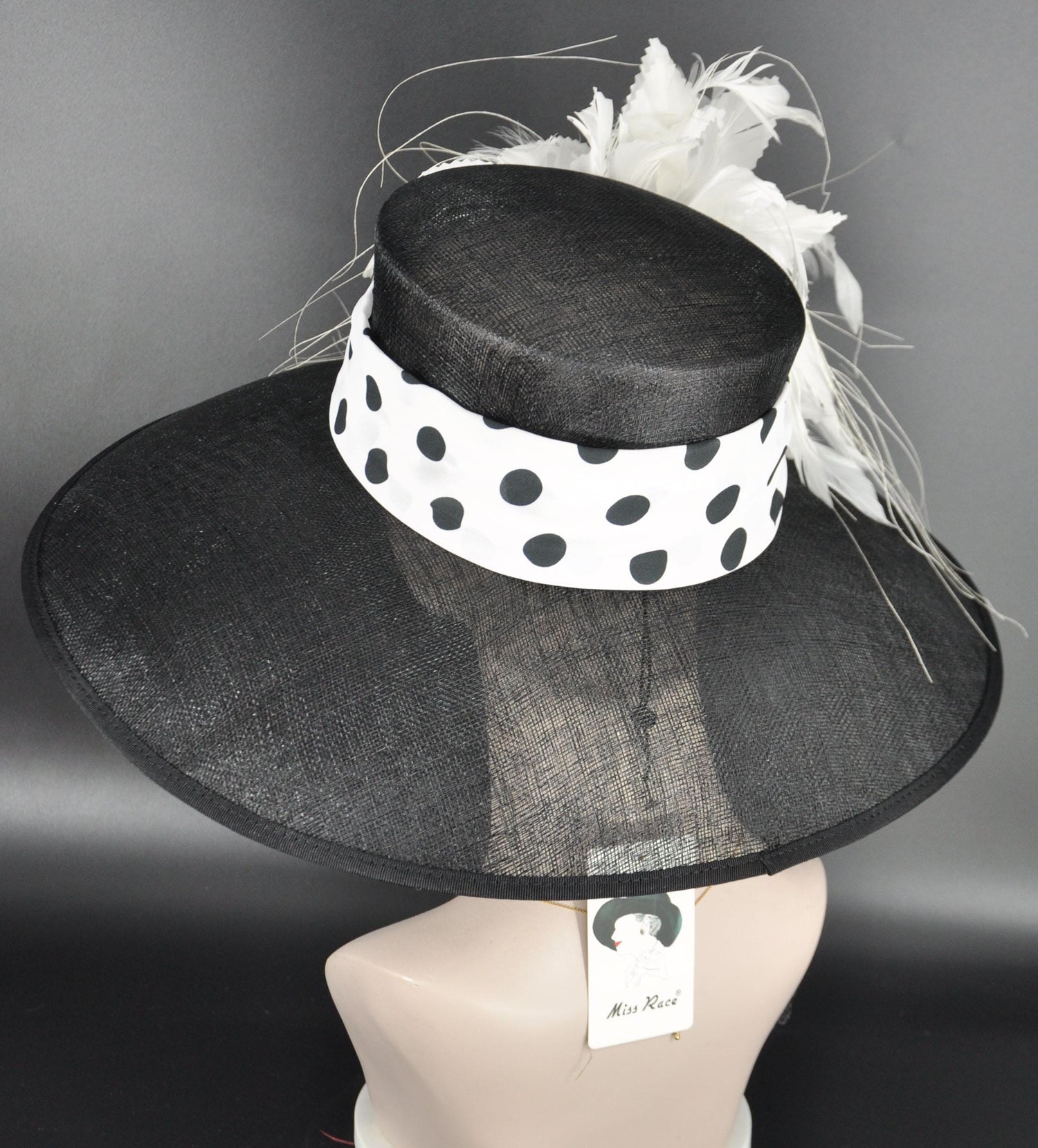 Black w White Kentucky Derby Hat Tea Party Wide Brim Sinamay Hat