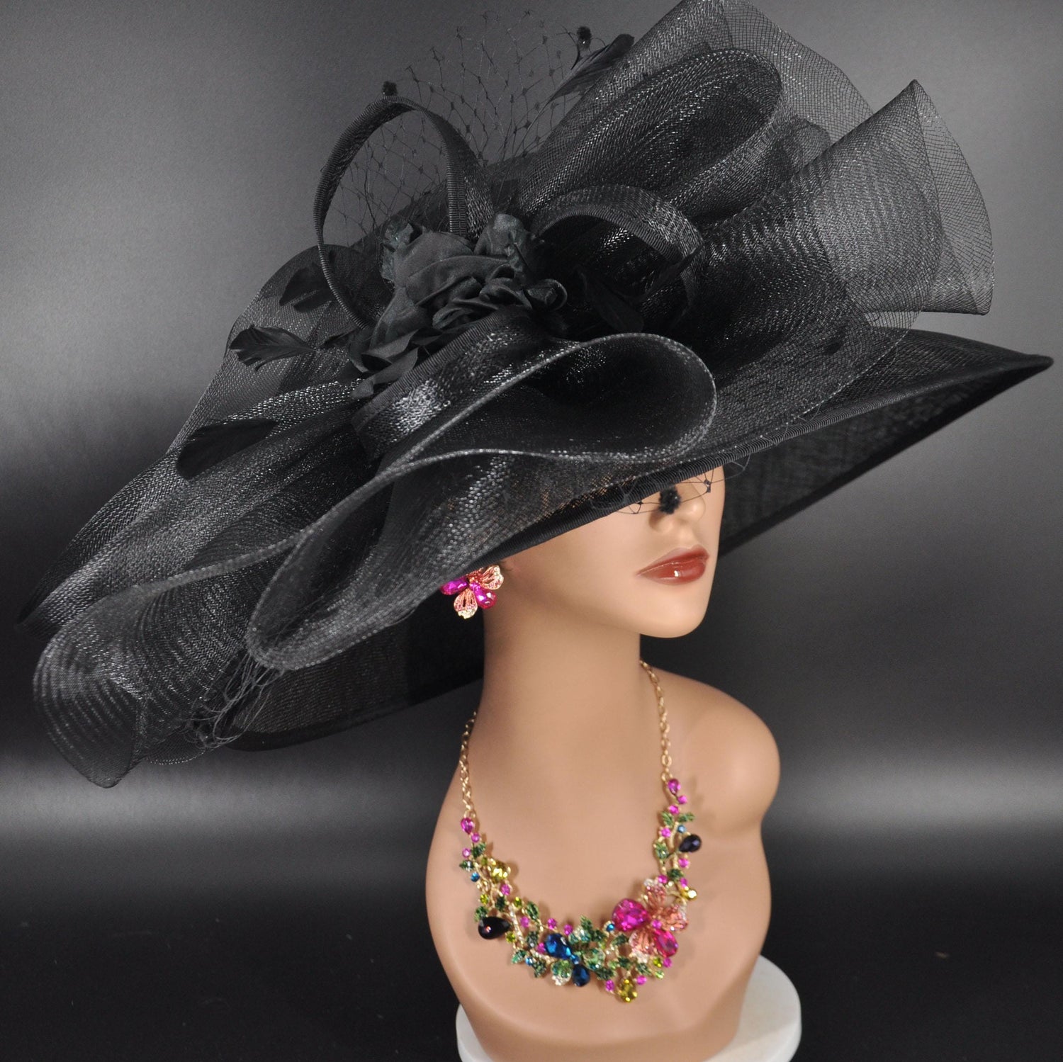 Black Wide Brim Derby Hat: Kentucky Oaks, Tea Party, Wedding
