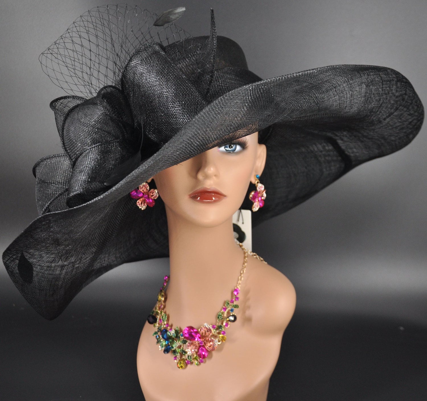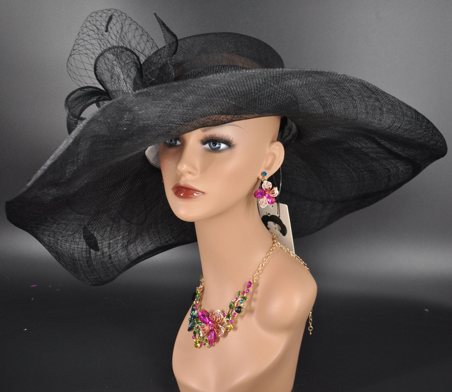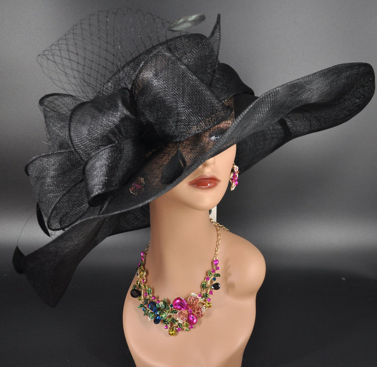 Black Wide Brim Sinamay Derby Hat: Oaks, Church, Wedding