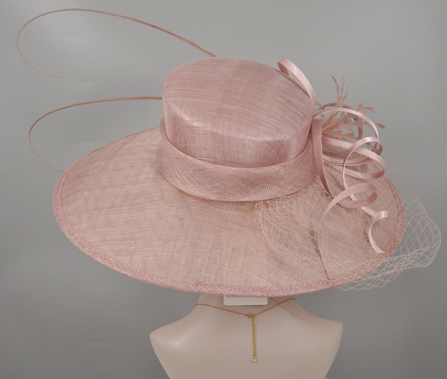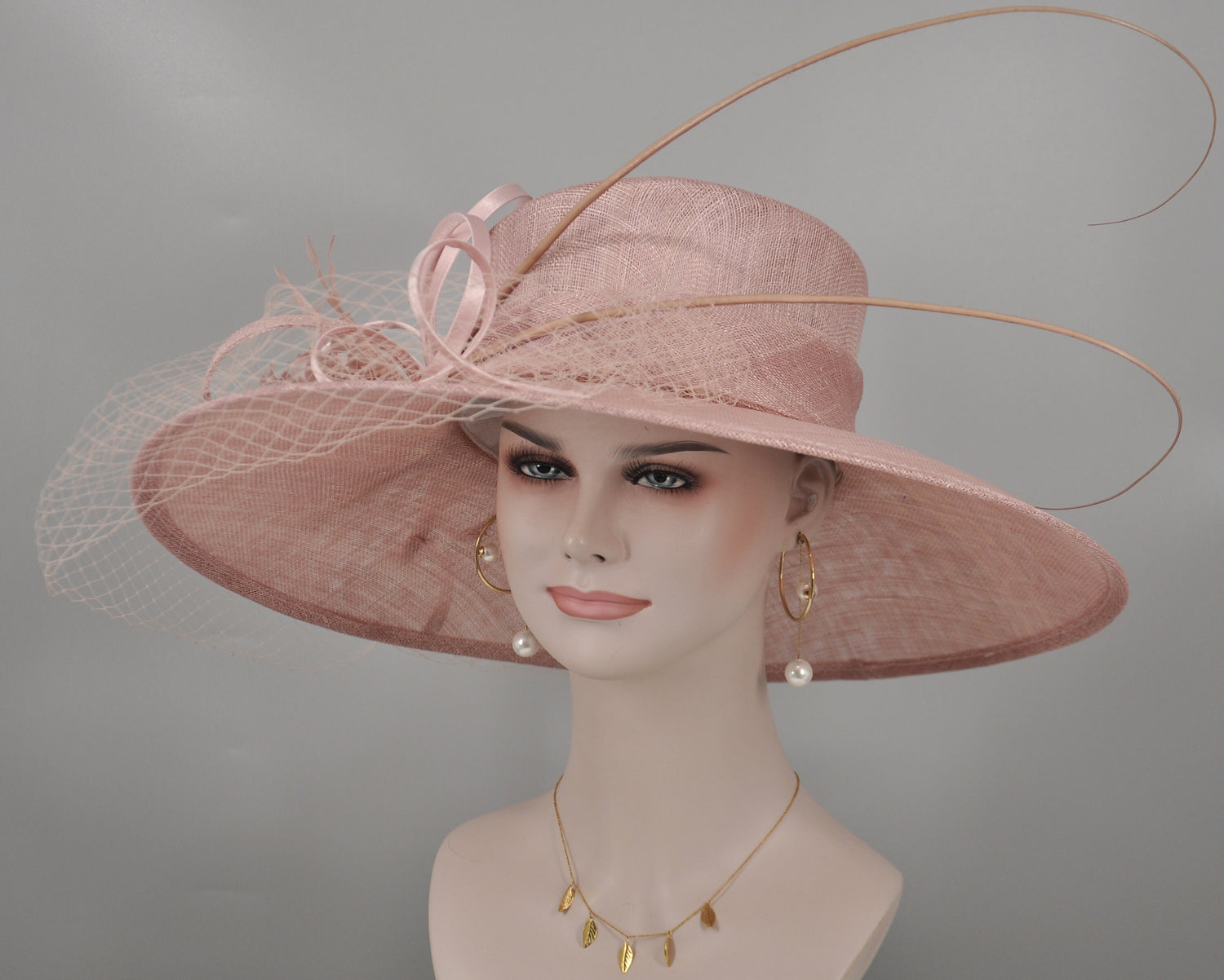 Blush Pink Sinamay Derby Hat: Wide Brim Wedding Ascot Race Day
