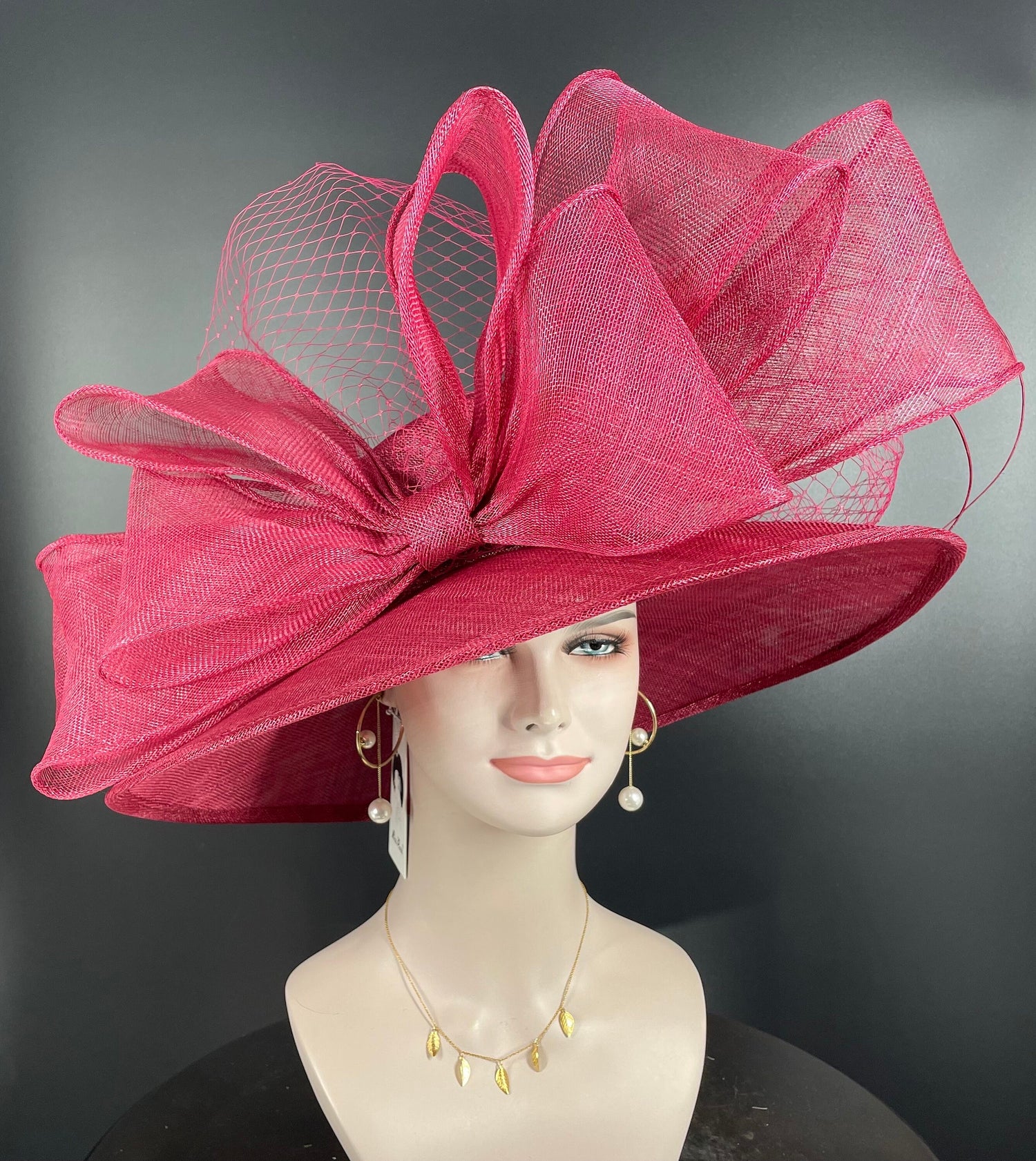 Burgundy Sinamay Wide Brim Hat: Royal Ascot, Kentucky Derby