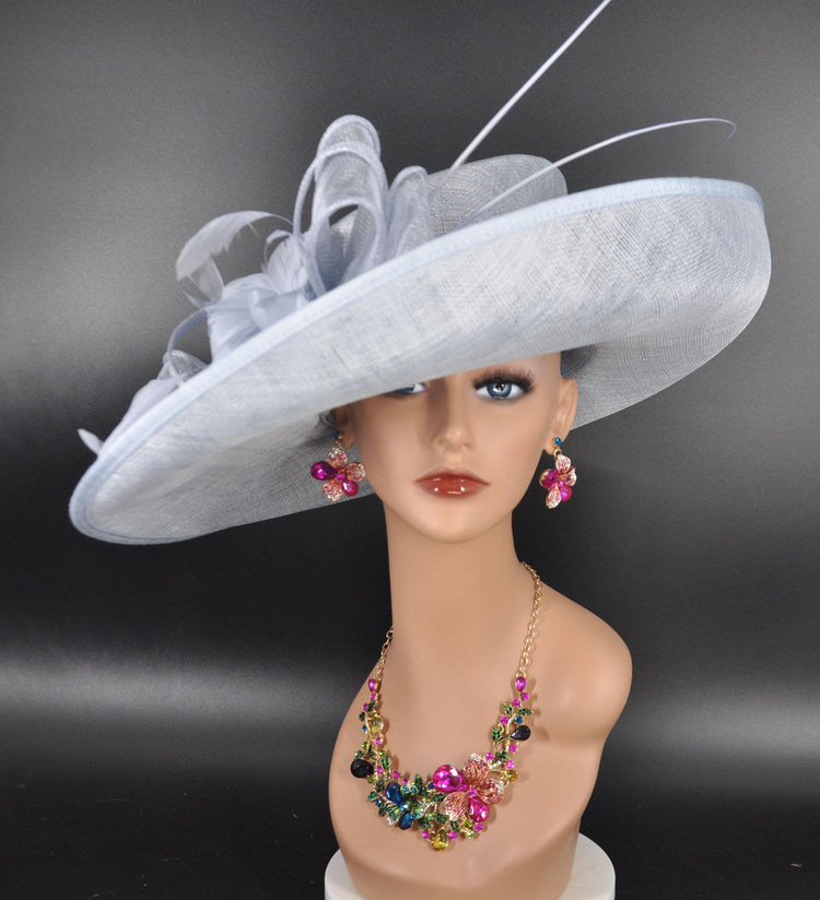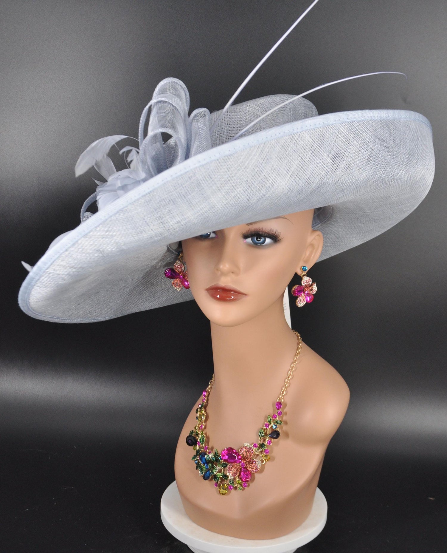 Church Kentucky Derby Hat Carriage Tea Party Wedding Wide Brim Royal Ascot Horse Race Oaks day hat Light Blue/ Powder Blue Hat