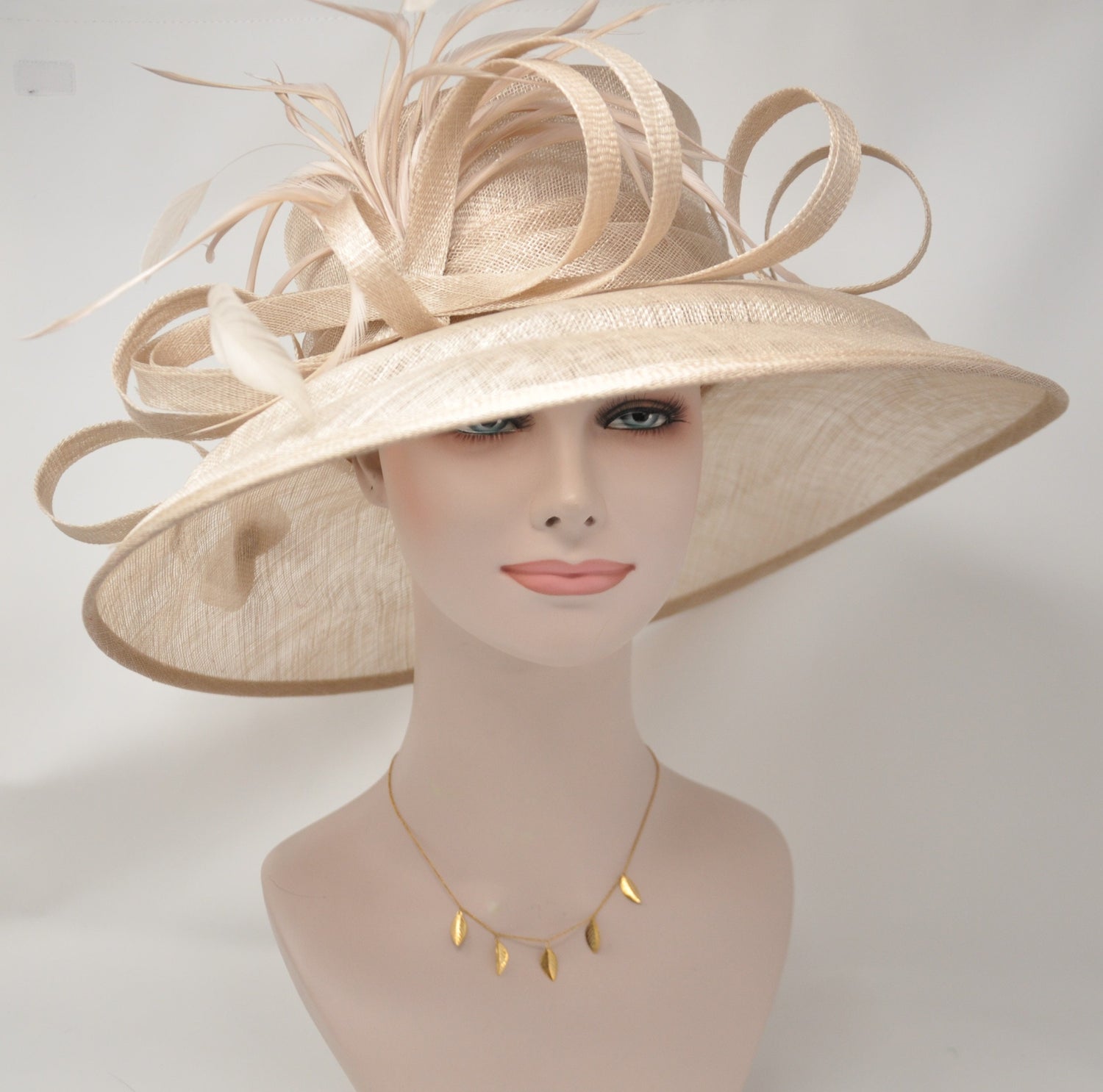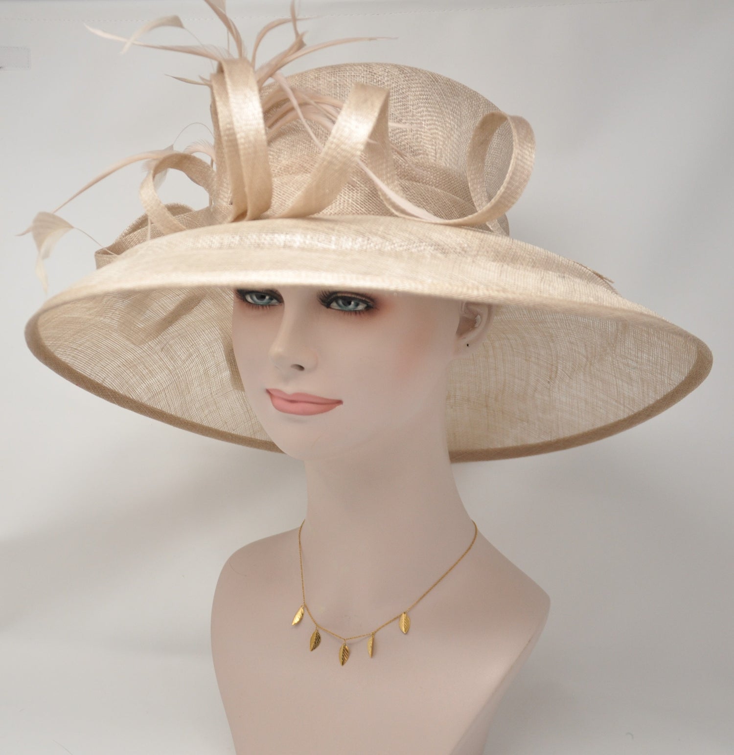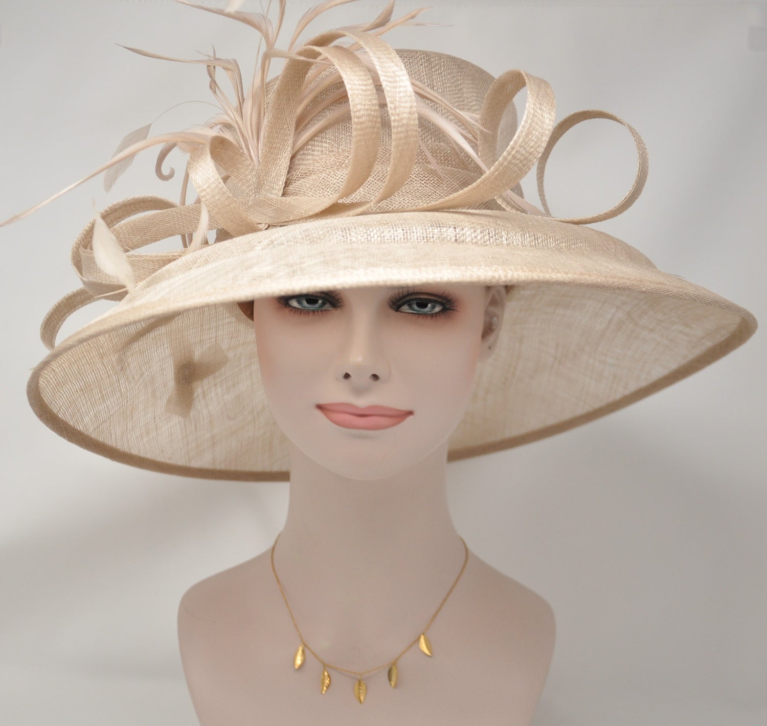 Church Kentucky Derby Hat Carriage Tea Party Wedding Wide Brim Royal Ascot Horse Race Oaks day hatChampagne