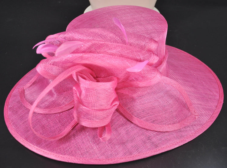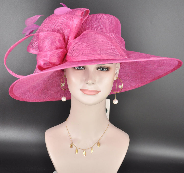 Elegant Hot Pink Sinamay Wide-Brim Hat – Kentucky Derby, Wedding, Garden Party, Ascot Hat