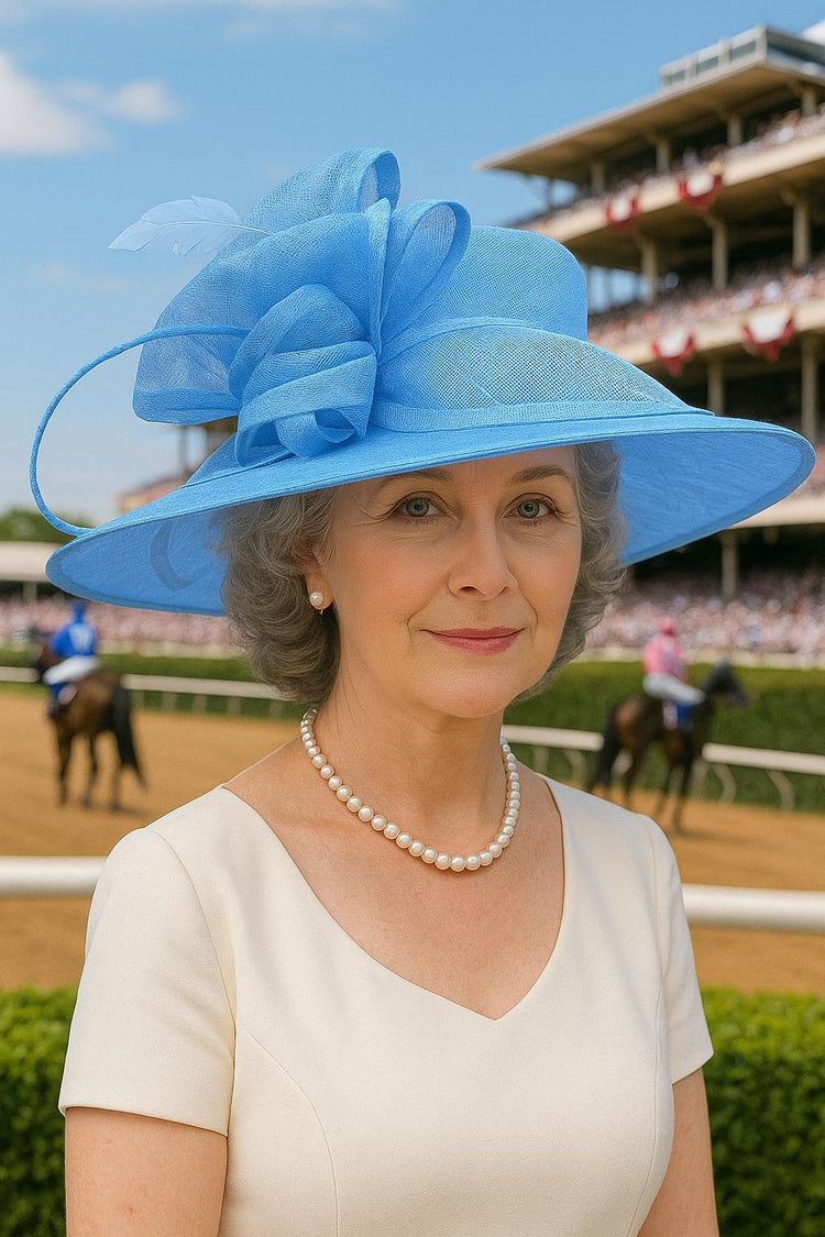 This elegant wide-brim design offers beautiful coverage and a classic silhouette, perfect for the Kentucky Derby, Royal Ascot, tea parties, weddings, and garden events.