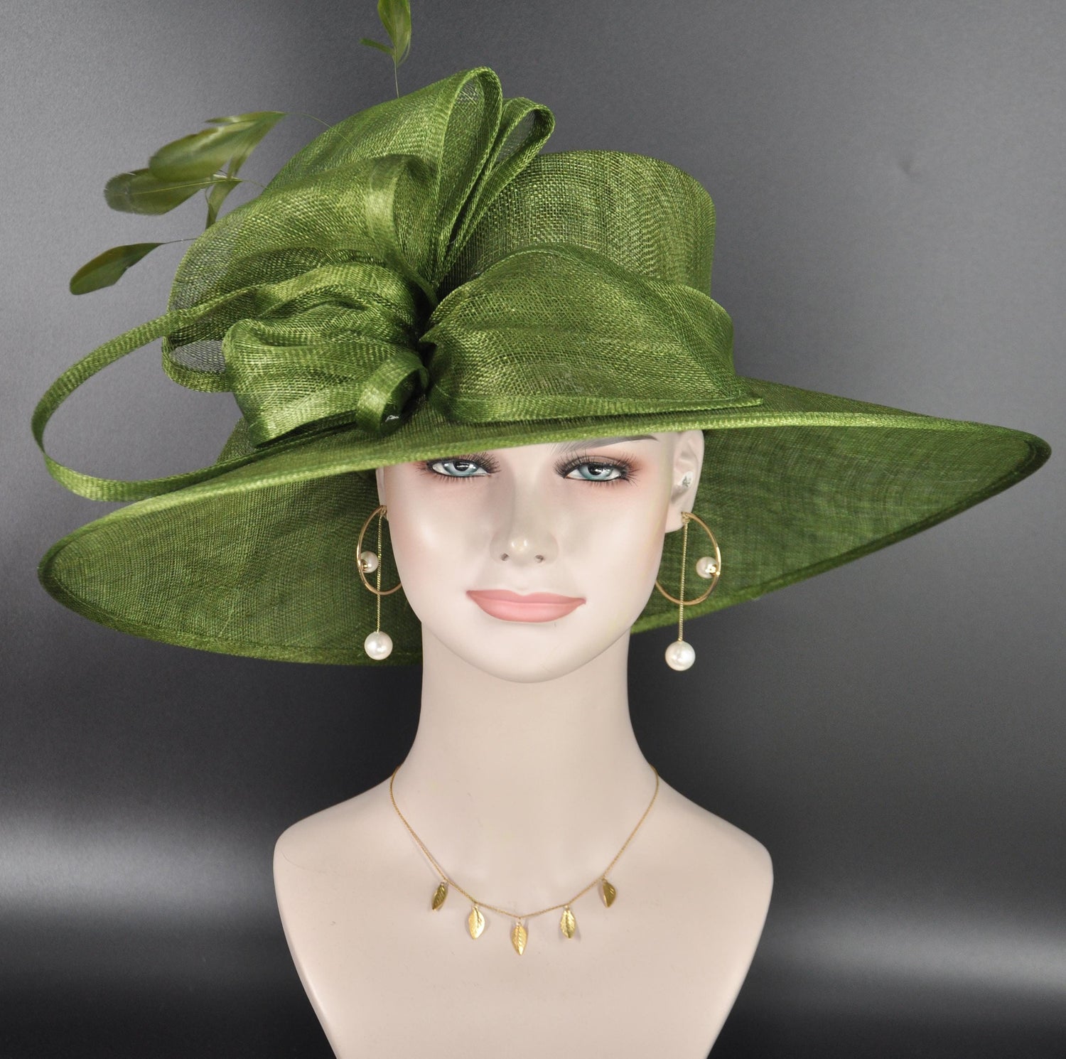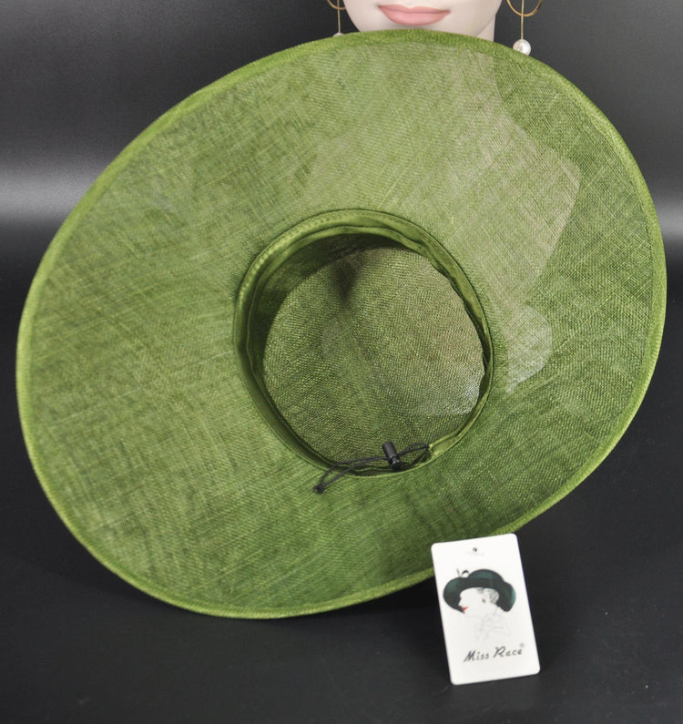 Elegant Olive Green Sinamay Wide-Brim Hat – Kentucky Derby, Wedding, Garden Party, Ascot Hat