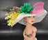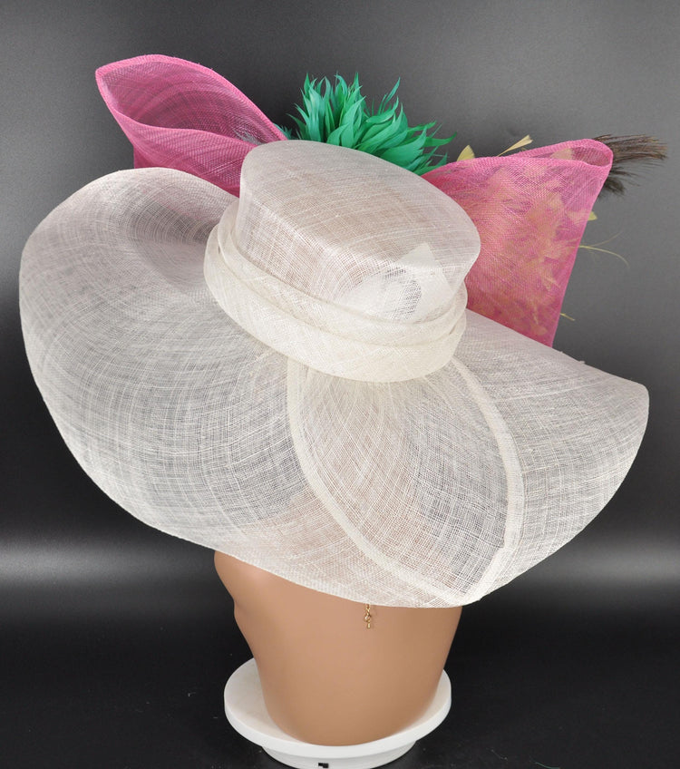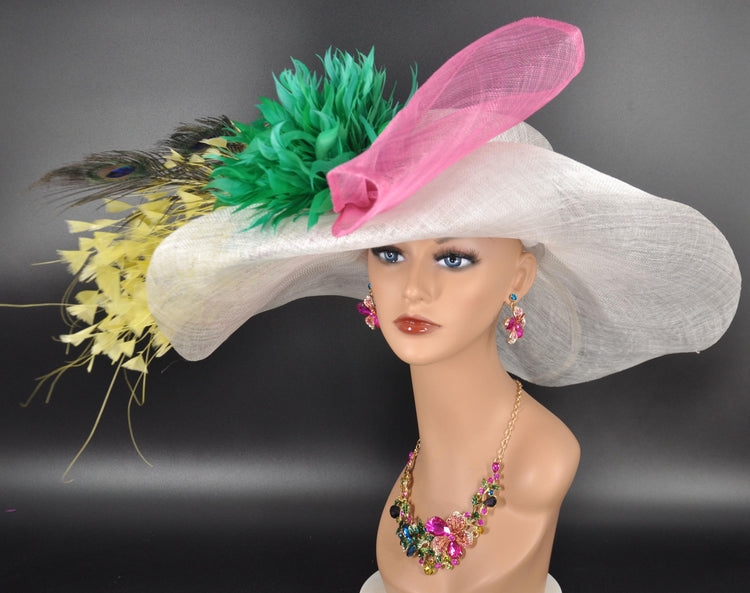 Feather Flower Kentucky Derby Hat: Wide Brim Sinamay Tea Party Hat