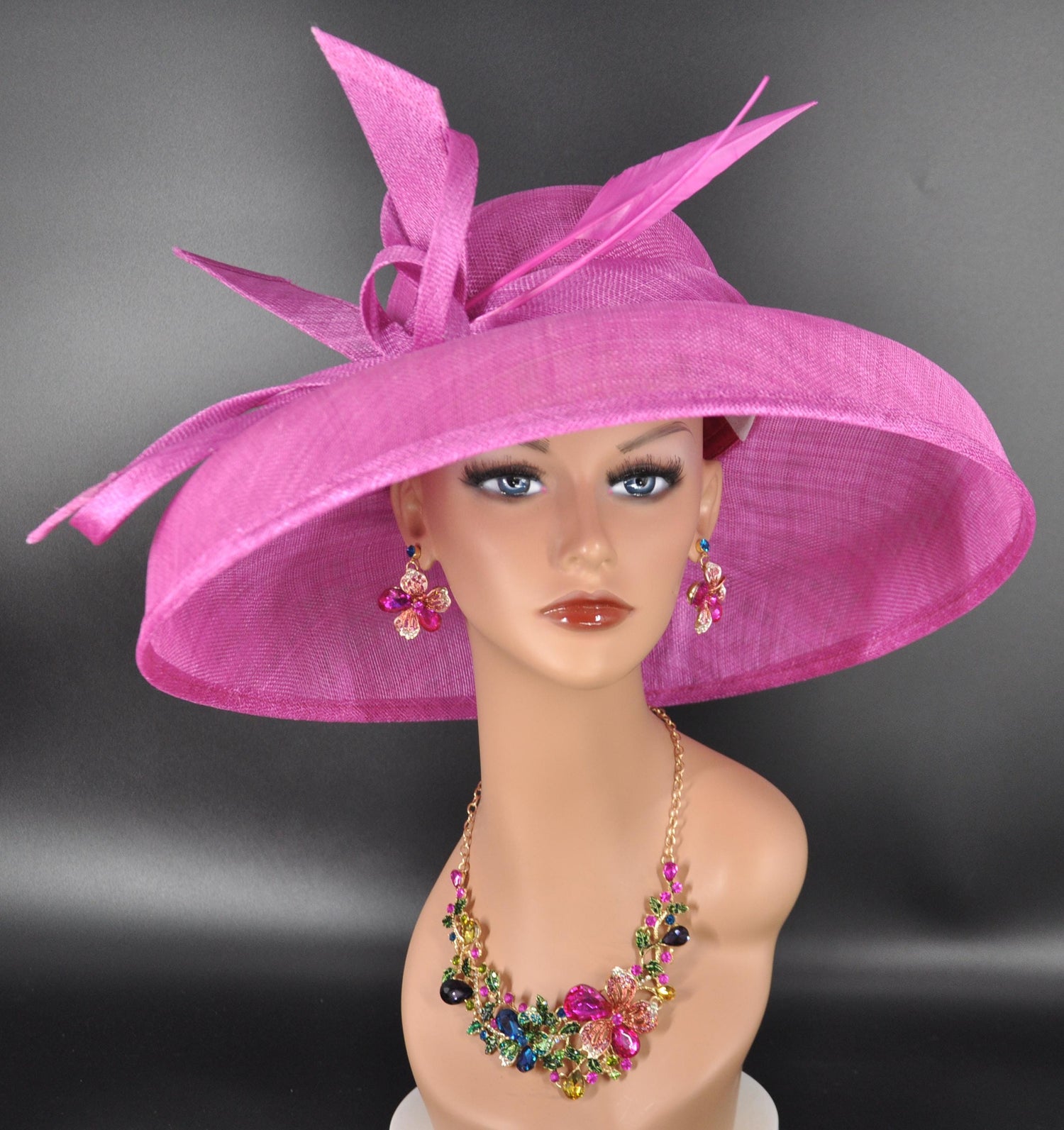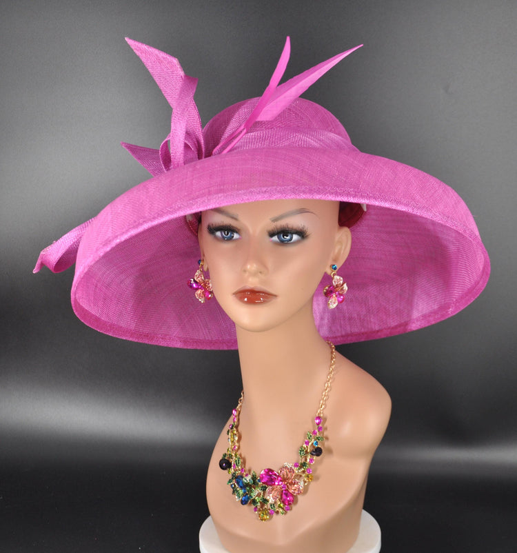 Fuchsia Sinamay Dome Hat: Wide Brim Kentucky Derby Tea Party Hat