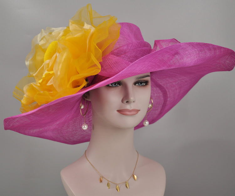 Fuchsia Sinamay Kentucky Derby Hat: Jumbo Silk Flower Wide Brim