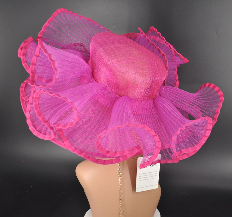Fuchsia Sinamay Kentucky Derby Hat: Wide Brim Wedding Tea Party Hat