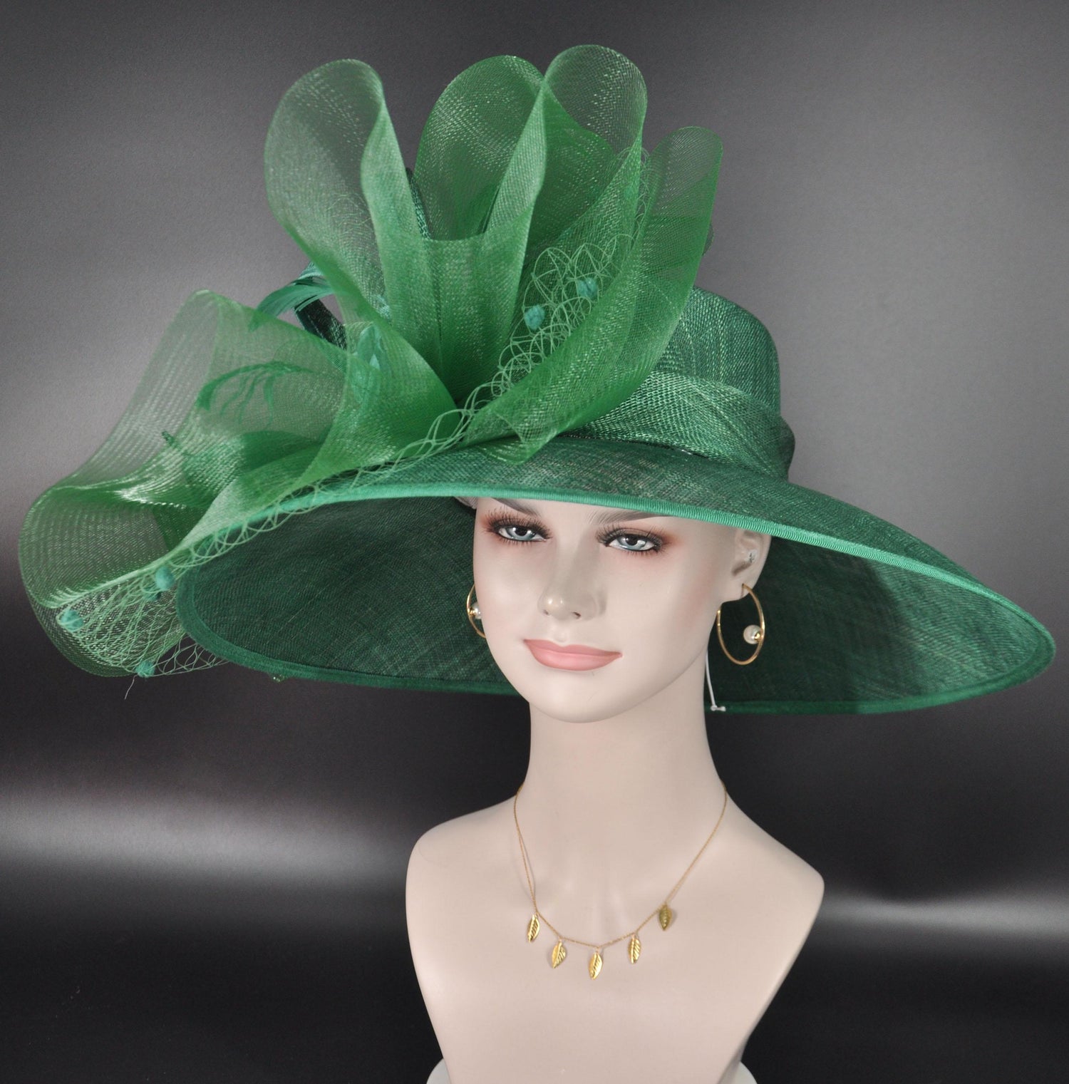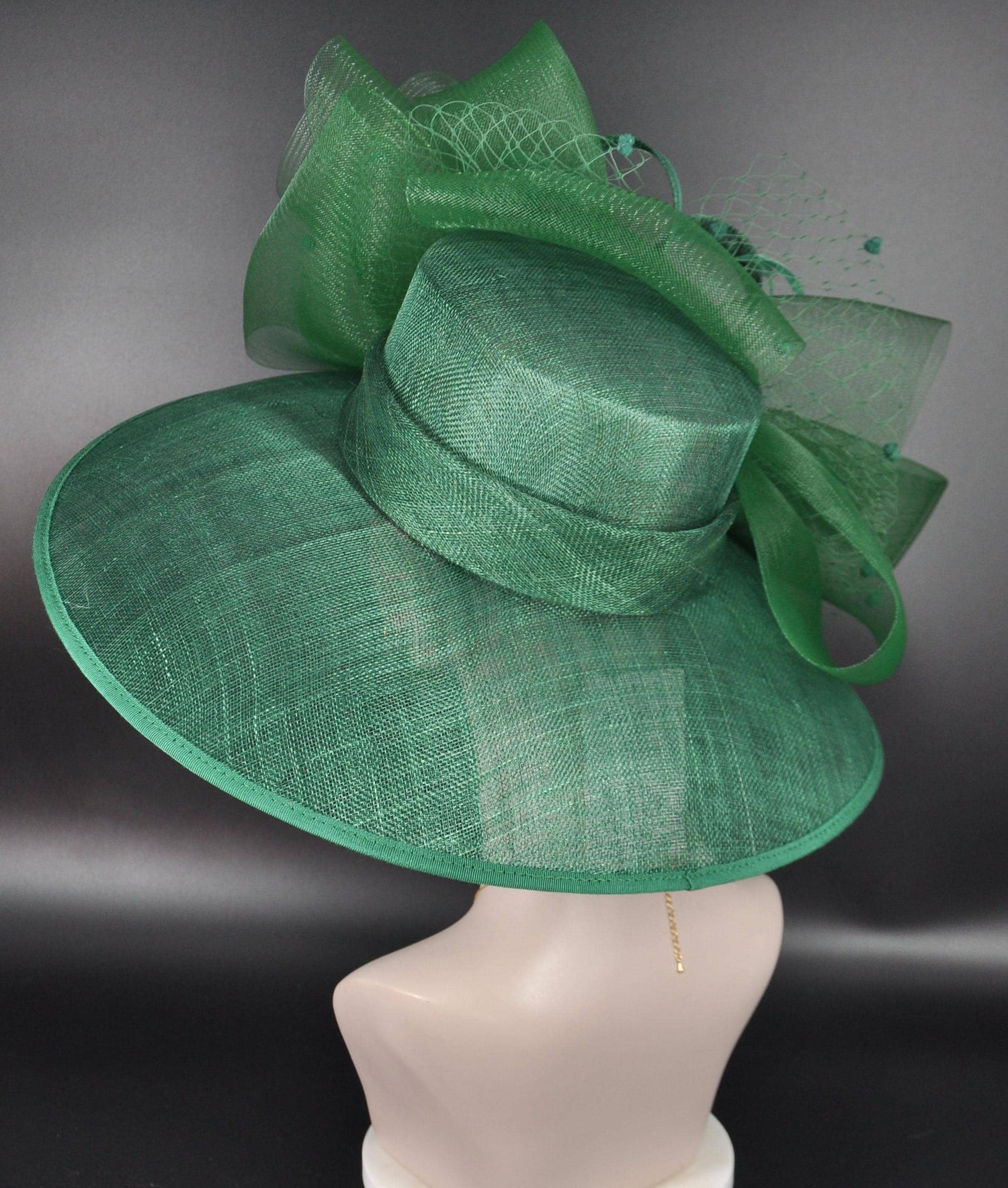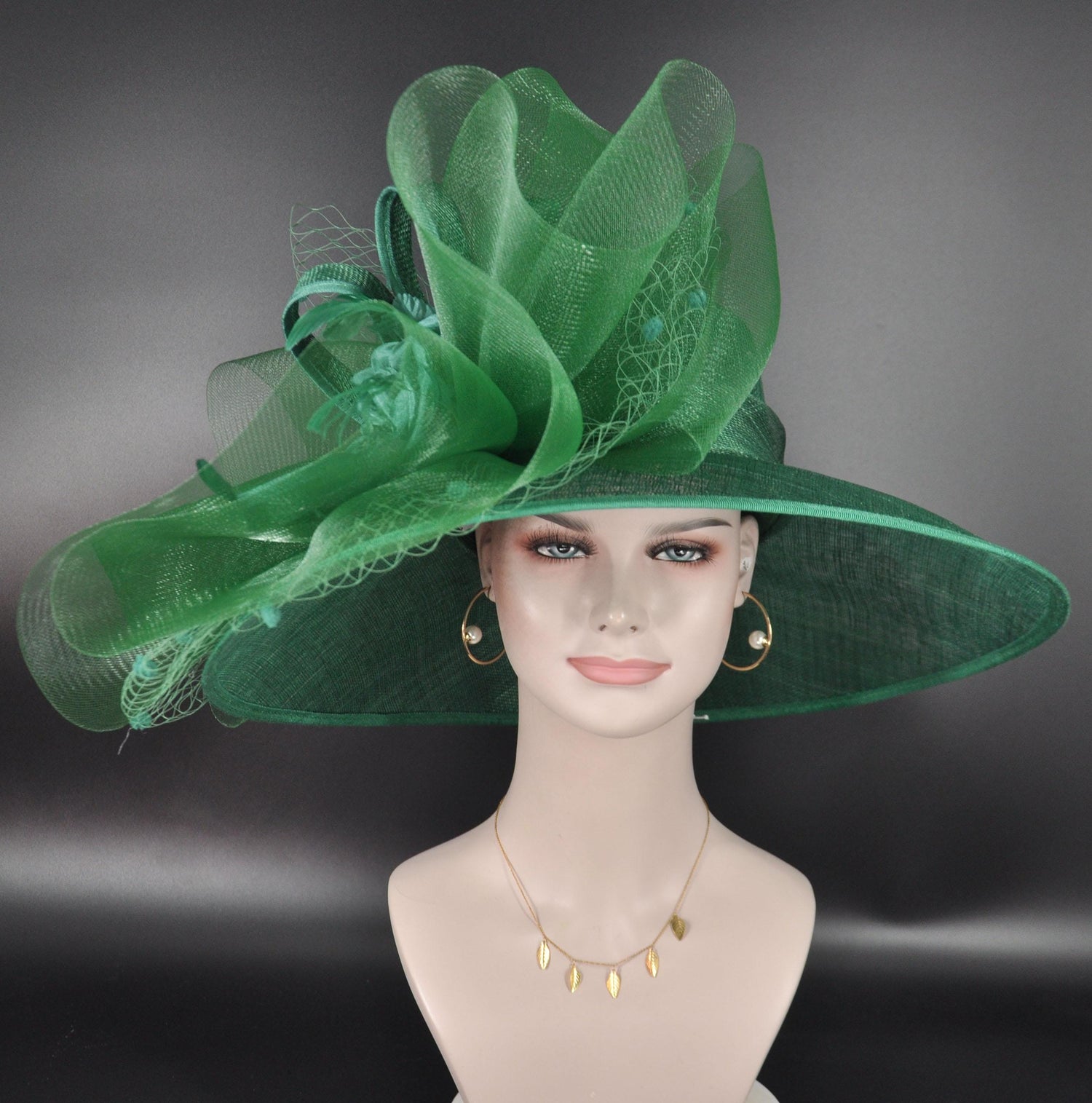 Green Sinamay Derby Hat: Wide Brim Kentucky Race Day Hat