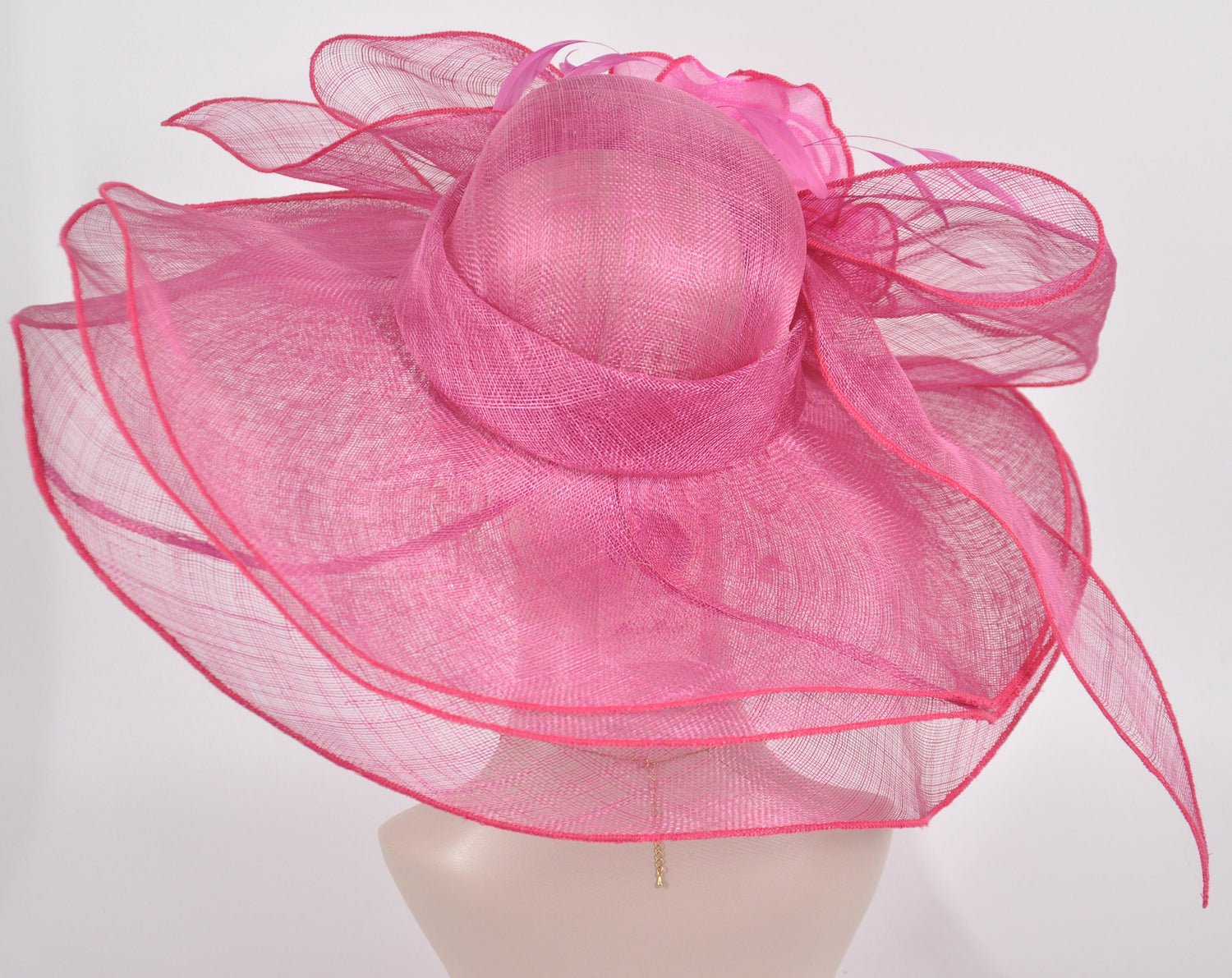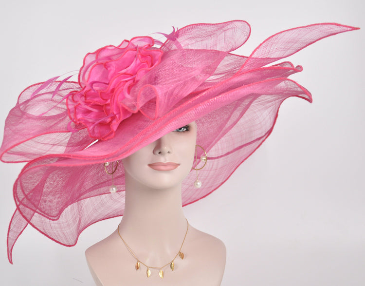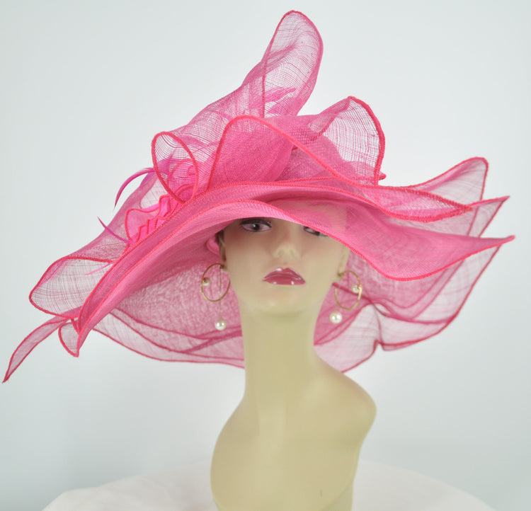 Hot Pink Sinamay Derby Hat: Wide Brim Bow Tea Party Hat