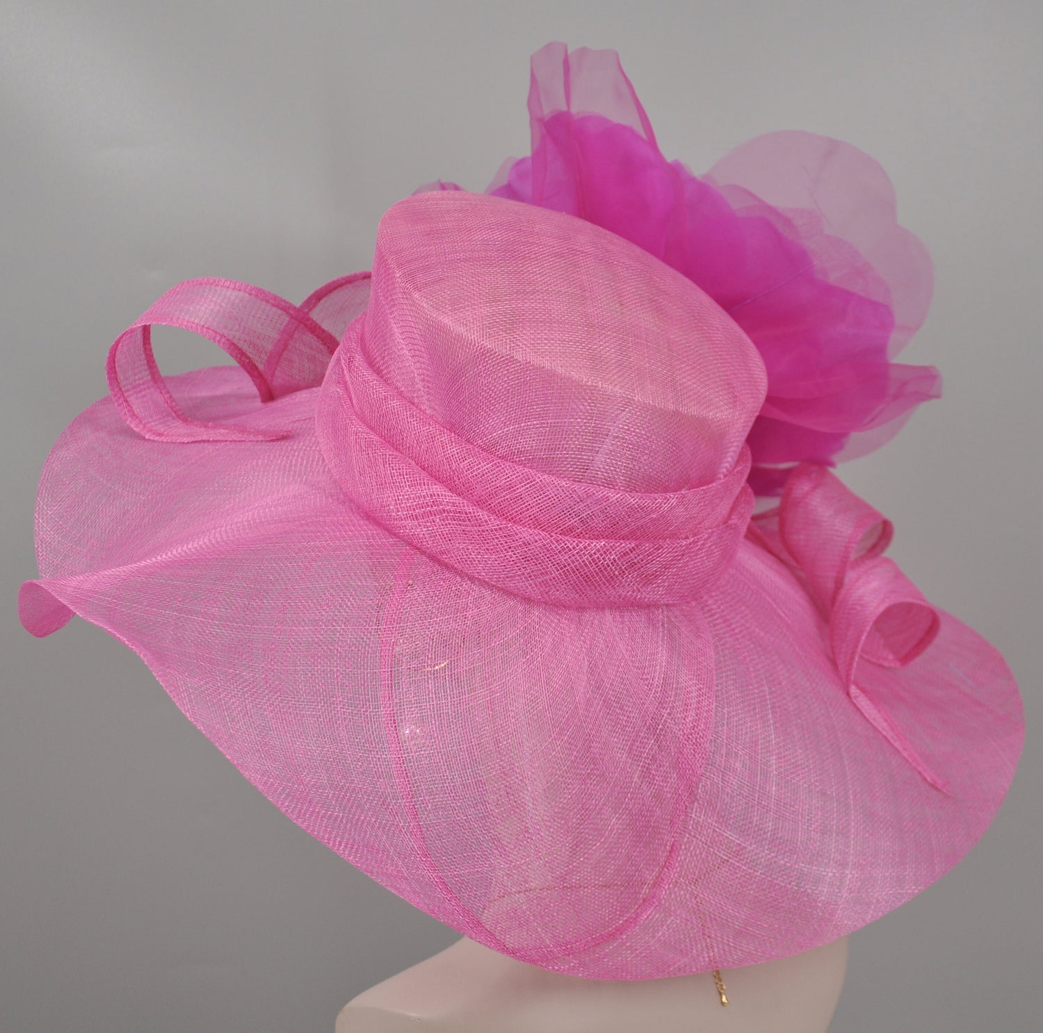 Hot Pink Sinamay Kentucky Derby Hat: Jumbo Silk Flower Wide Brim