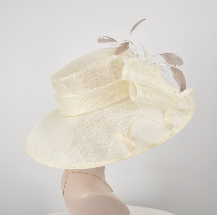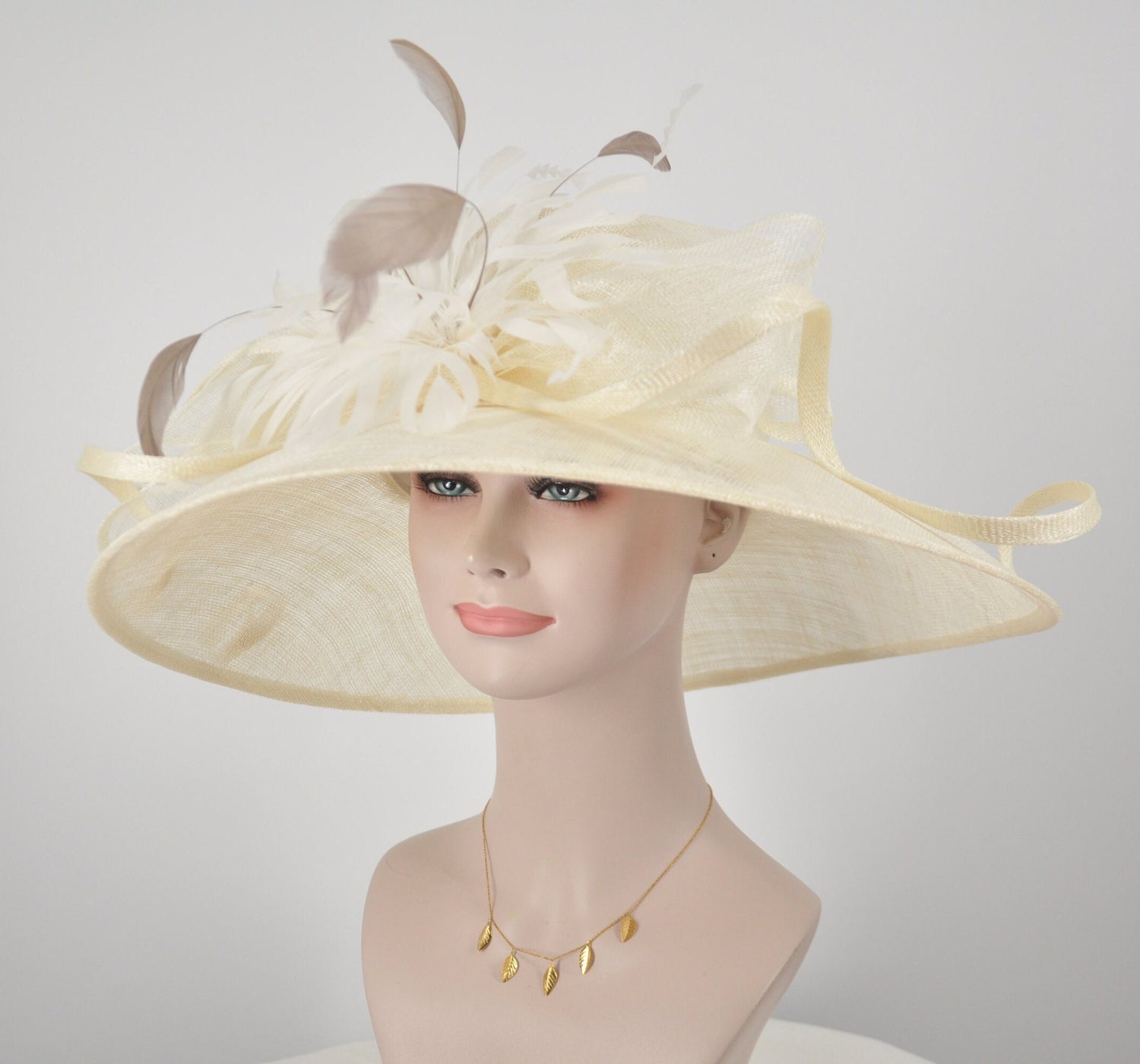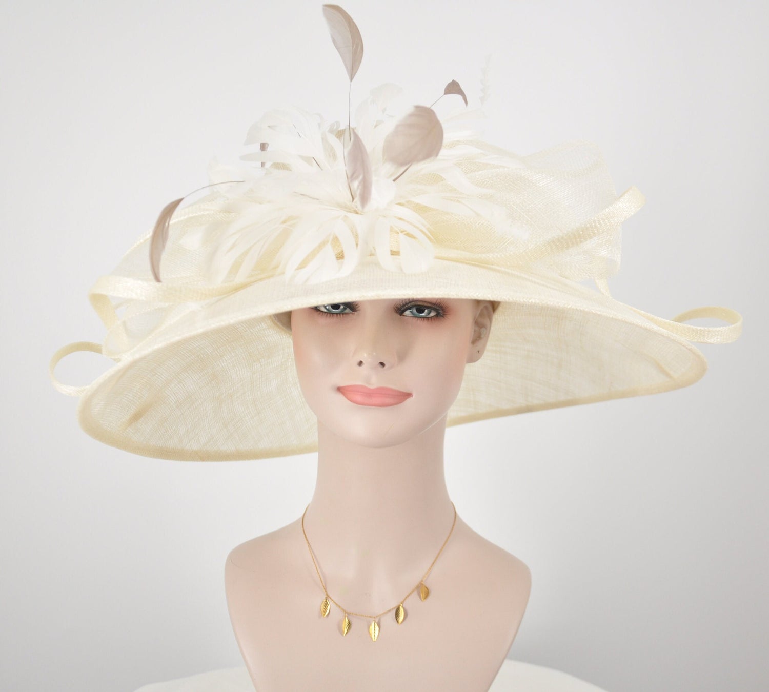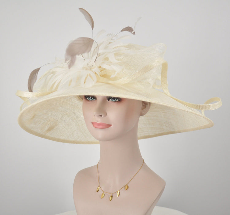Ivory Kentucky Derby Hat: Jumbo Feather Flower Sinamay Church Hat