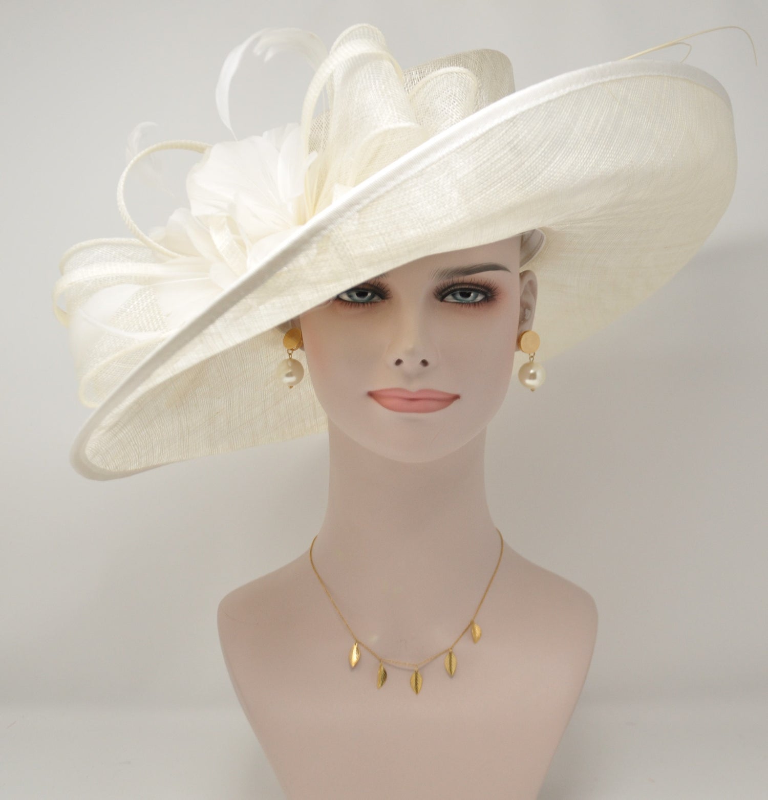 Ivory Kentucky Derby Hat: Wide Brim Sinamay Church Wedding Hat