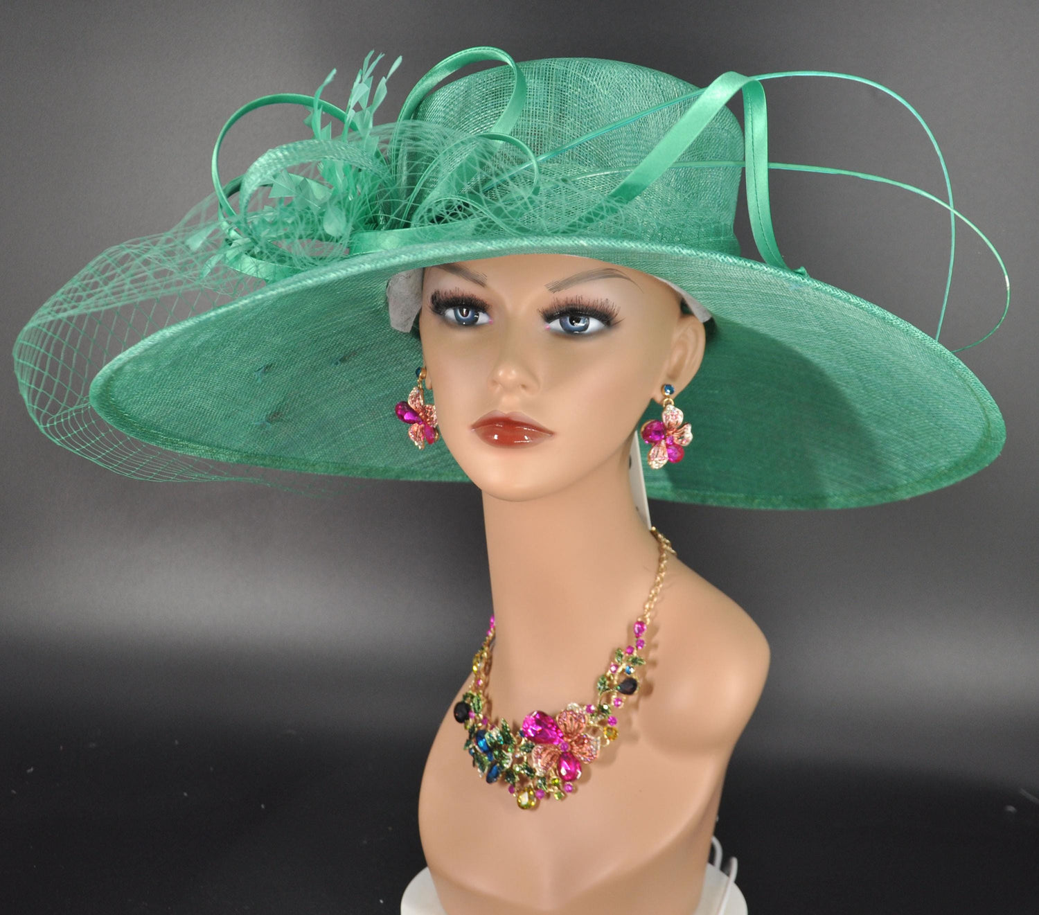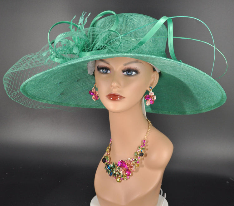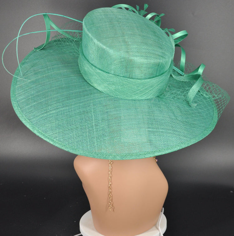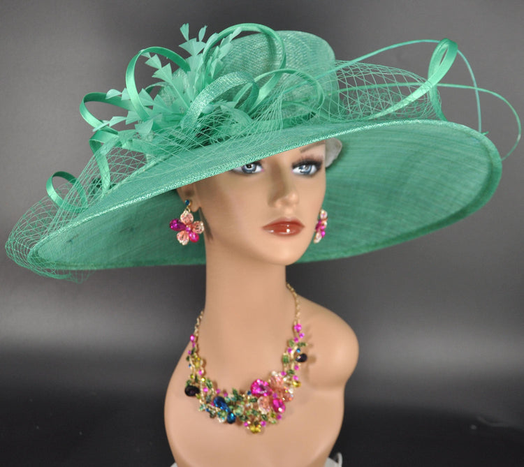 Jade Green Sinamay Wide Brim Hat: Kentucky Derby, Tea Party