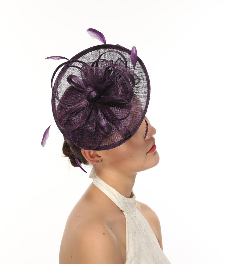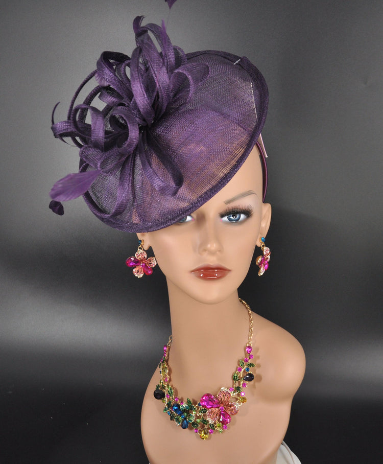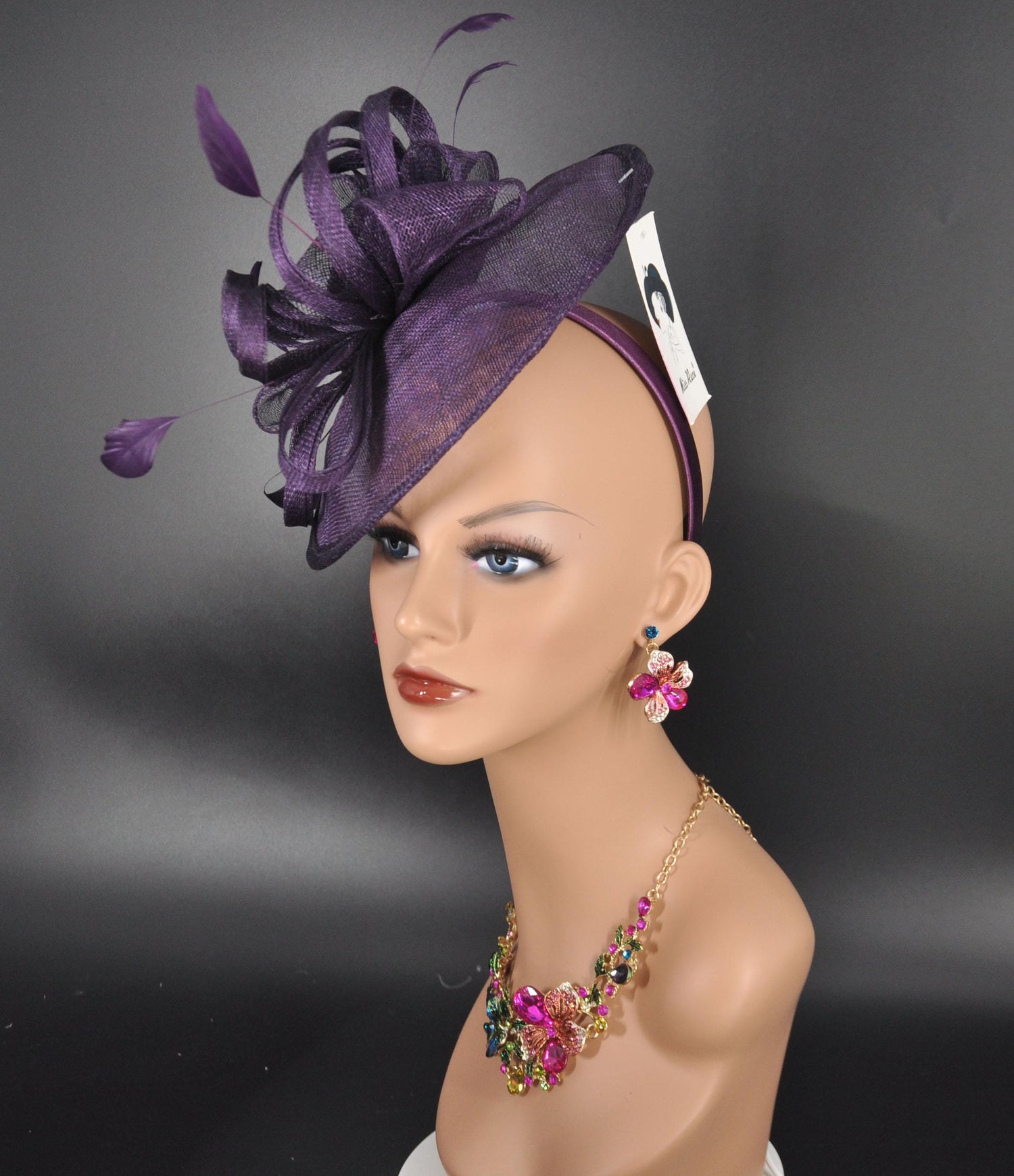 Kentucky Derby Fascinator Hat Feather Floral Sinamay Headband Fascinator Cocktail Purple