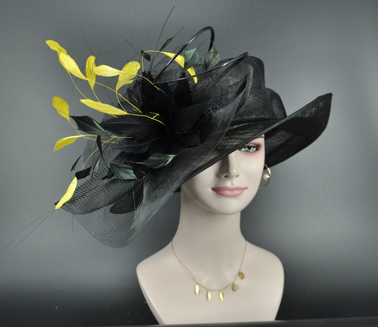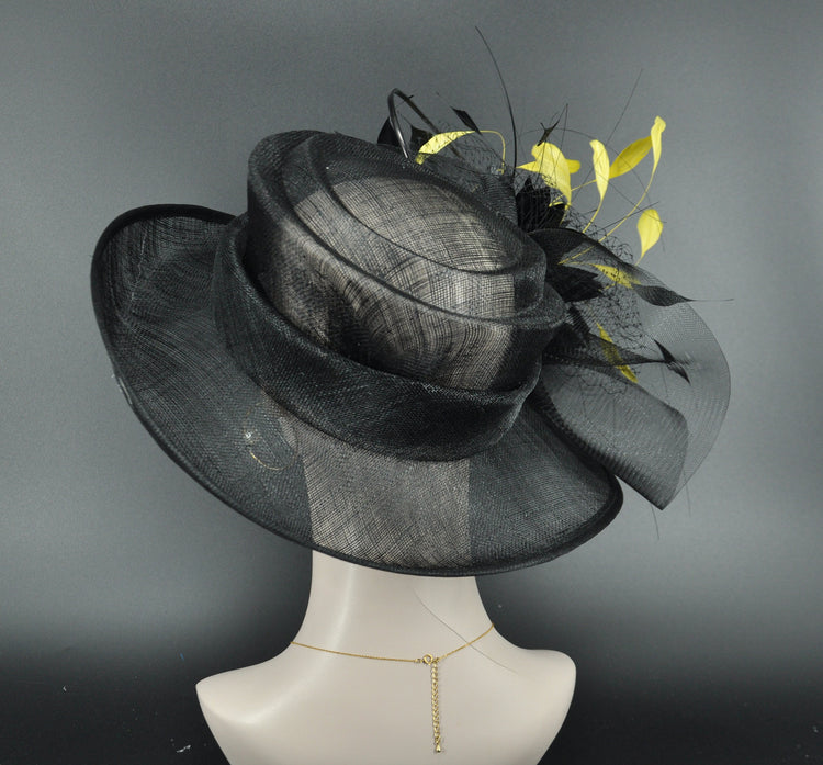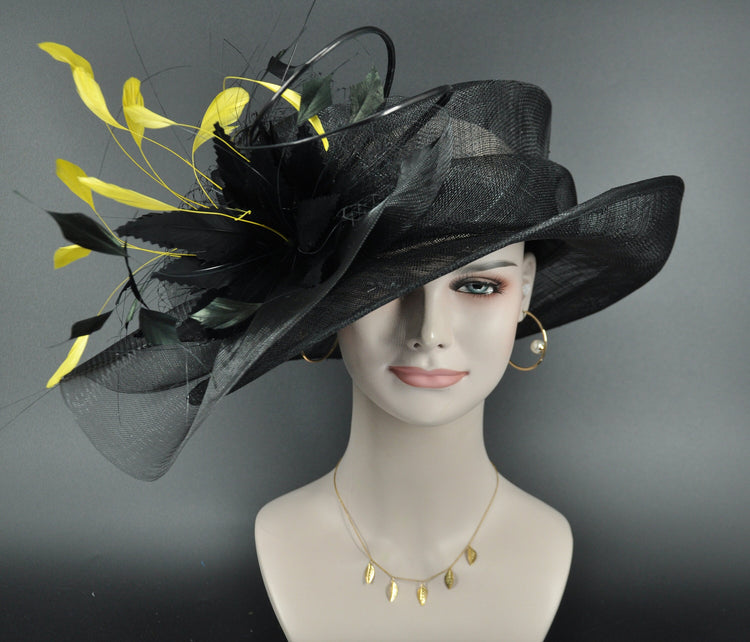 Kentucky Derby Hat: Black Feather Flower Sinamay Church Hat