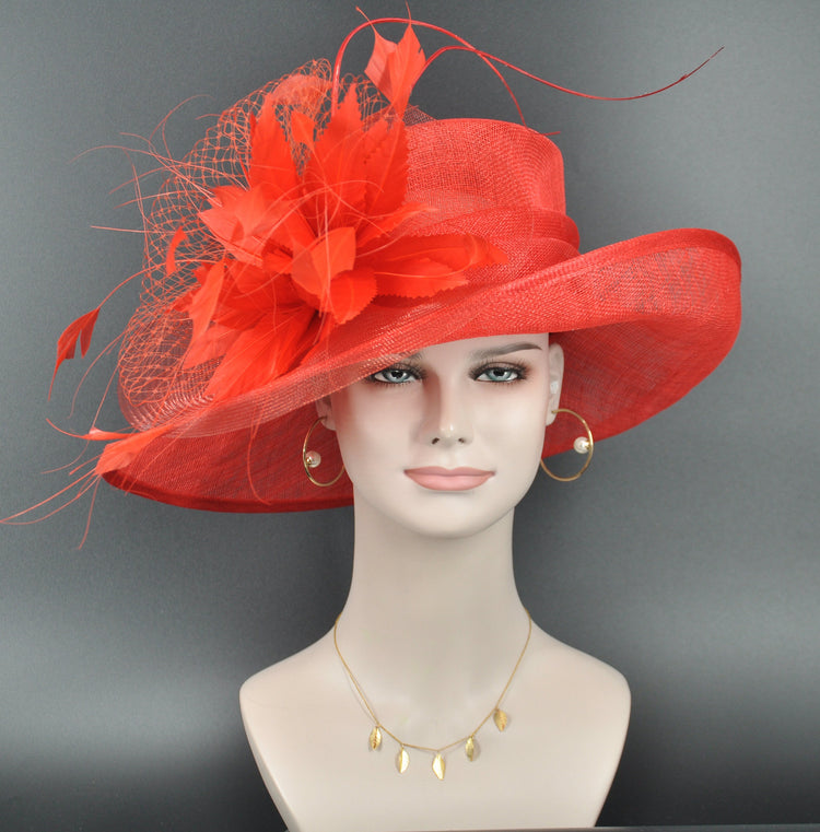 Kentucky Derby Hat: Feather Flower Sinamay Ascot Hat