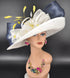 Kentucky Derby Hat: Ivory Sinamay Wide Brim with Navy Abaca Bow