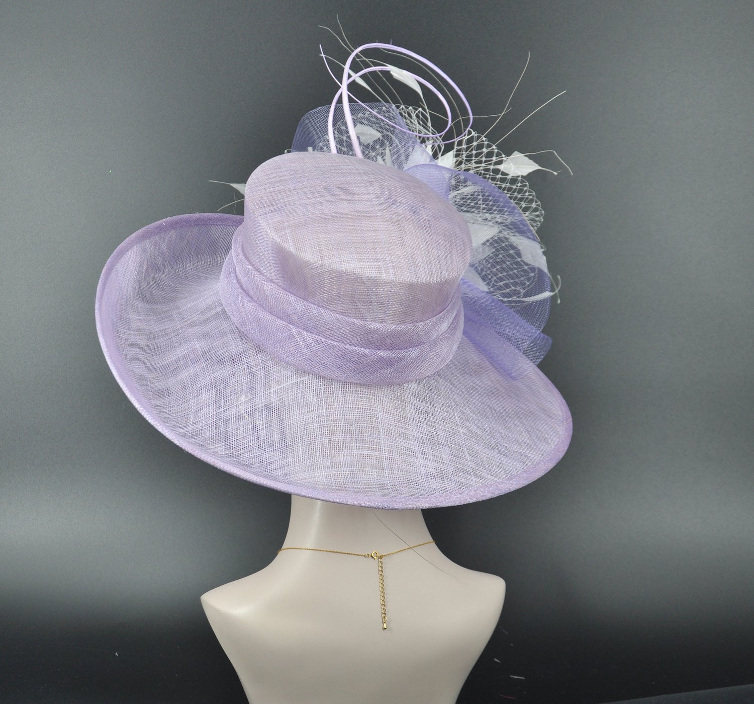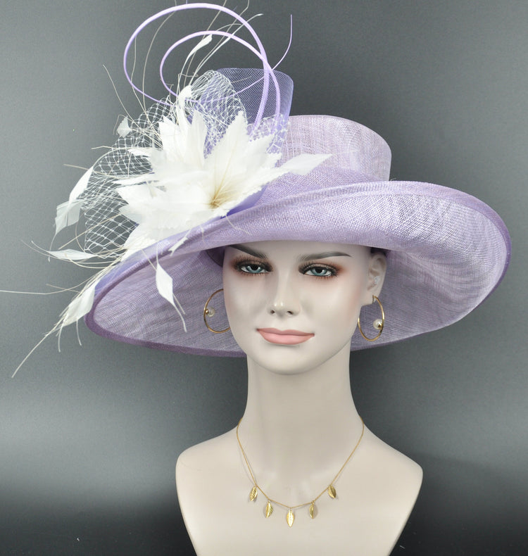 Lilac Kentucky Derby Hat: Feather Flower Church Wedding Hat