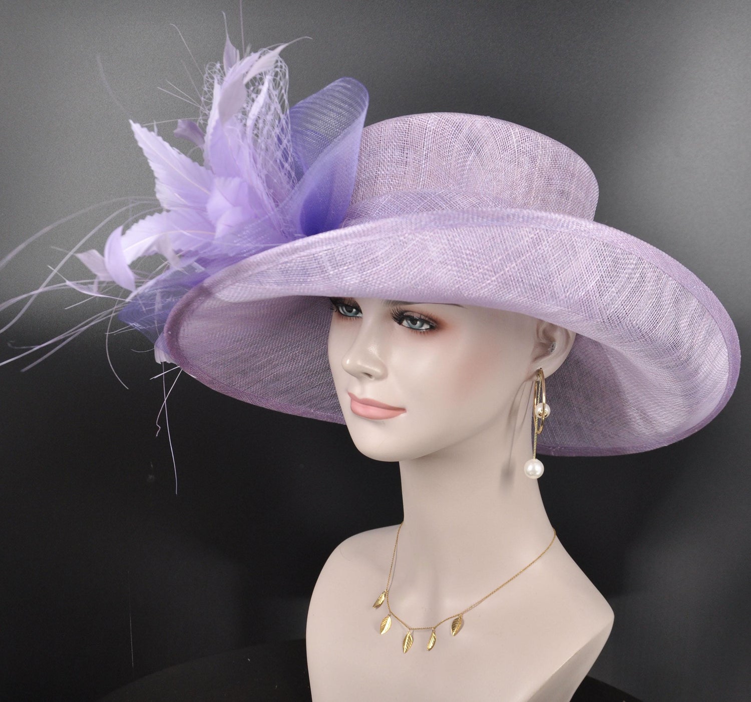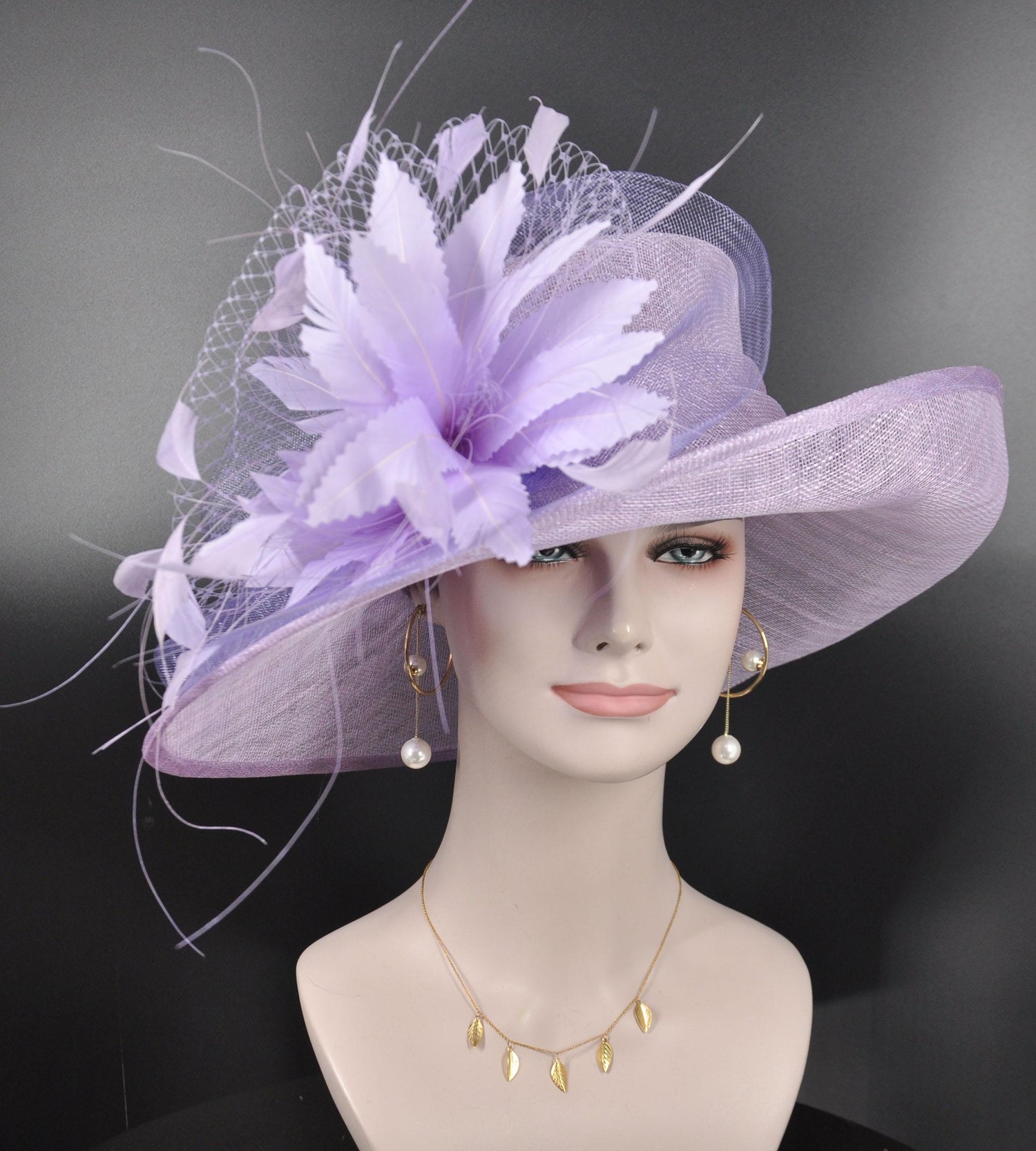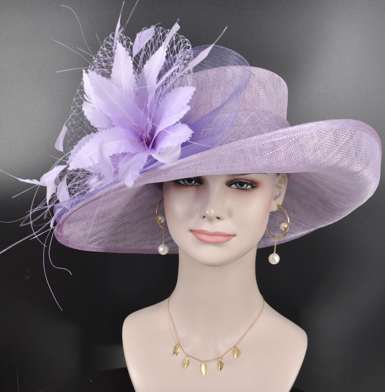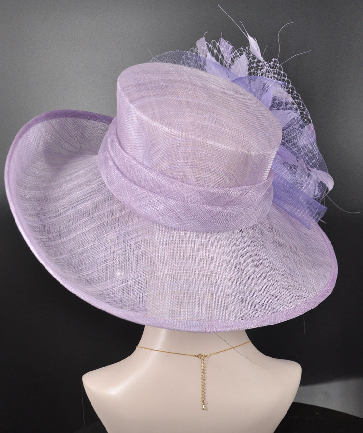 Lilac Kentucky Derby Hat: Feather Flower Royal Ascot Sinamay Hat