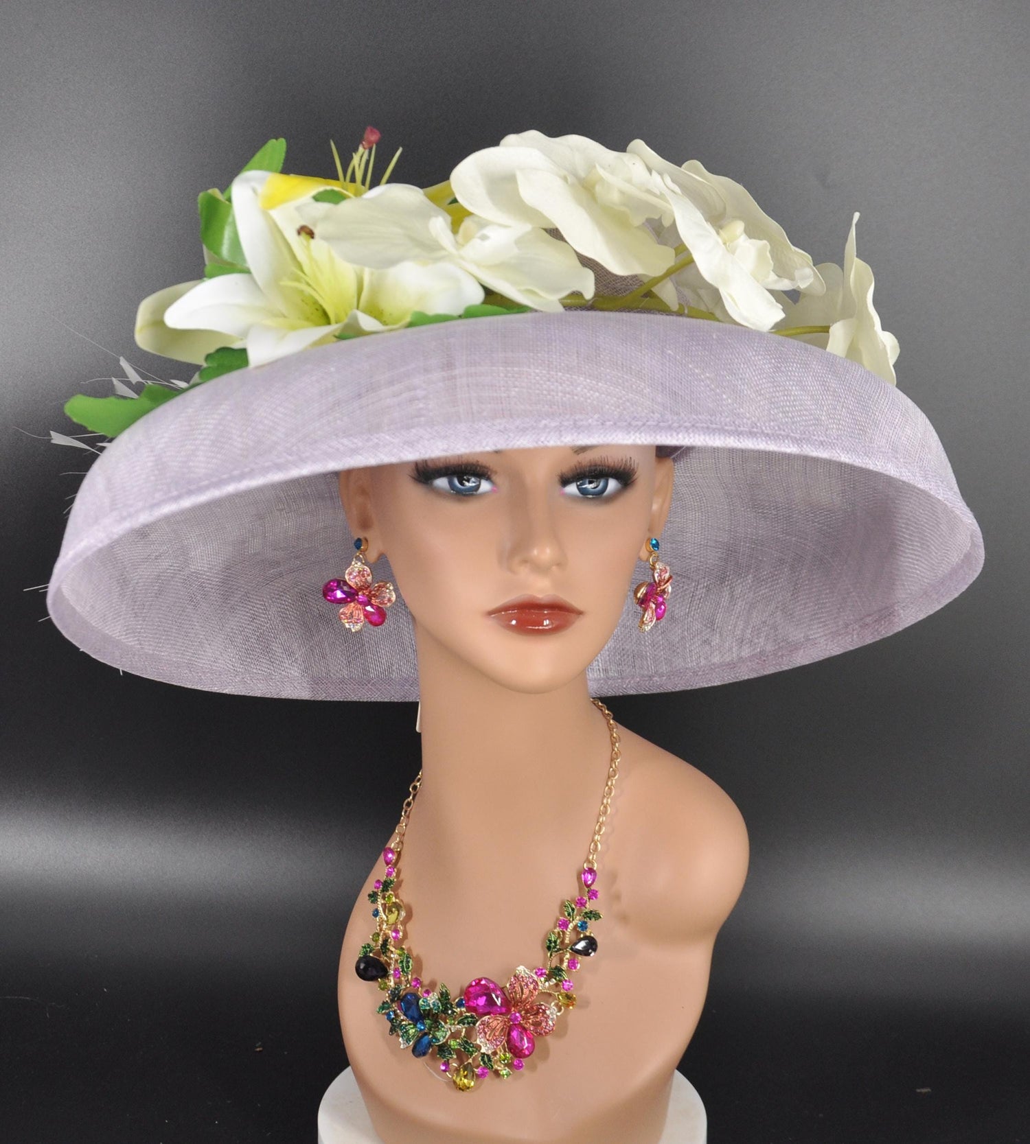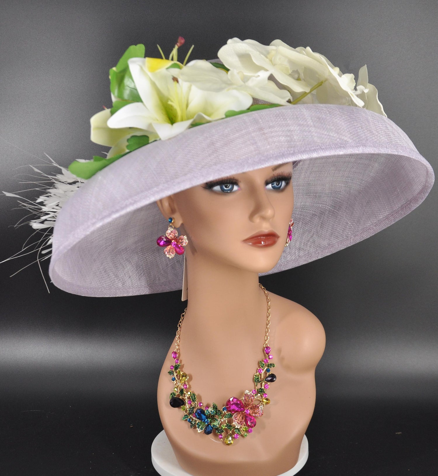 Lilac Sinamay Dome Hat: Audrey Hepburn Style Kentucky Derby Floral Hat